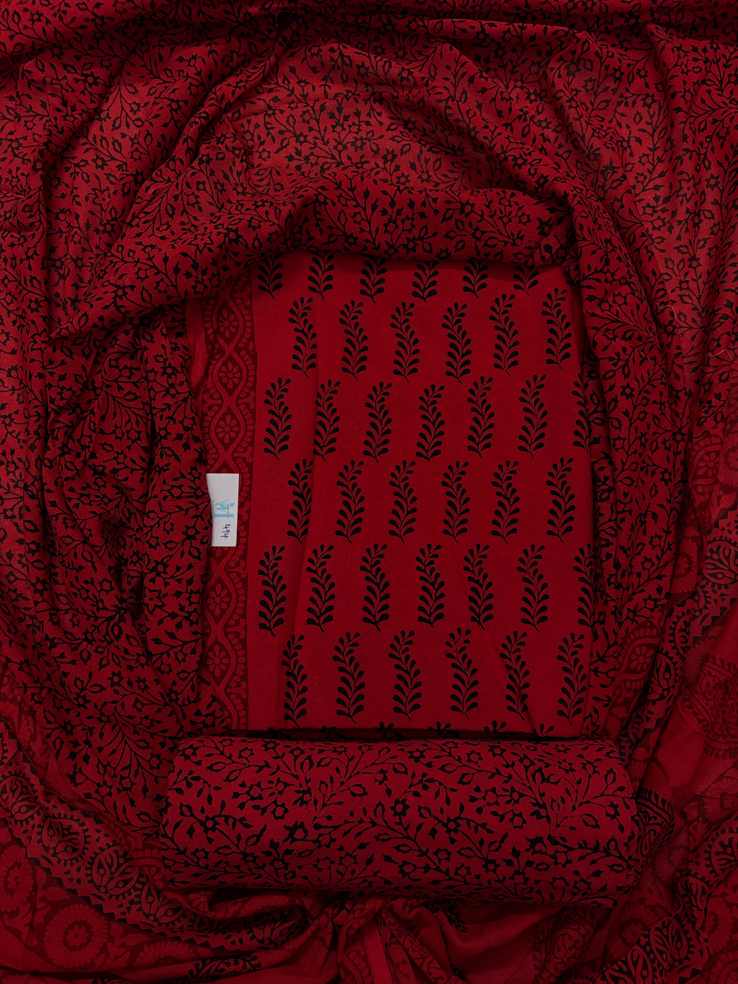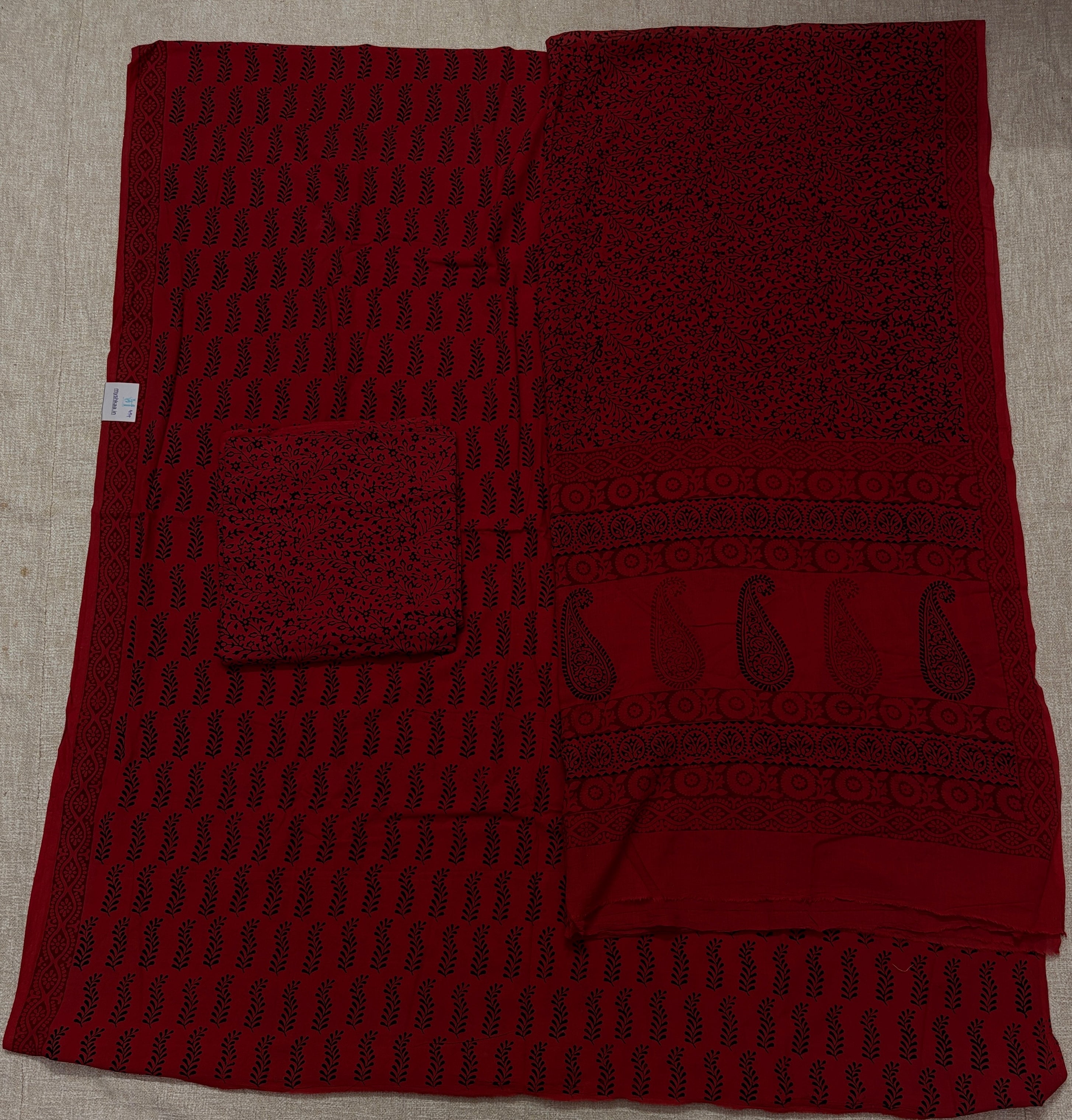 Paisley Print Red Handblock Print Cotton Suit fabric with Cotton Dupatta