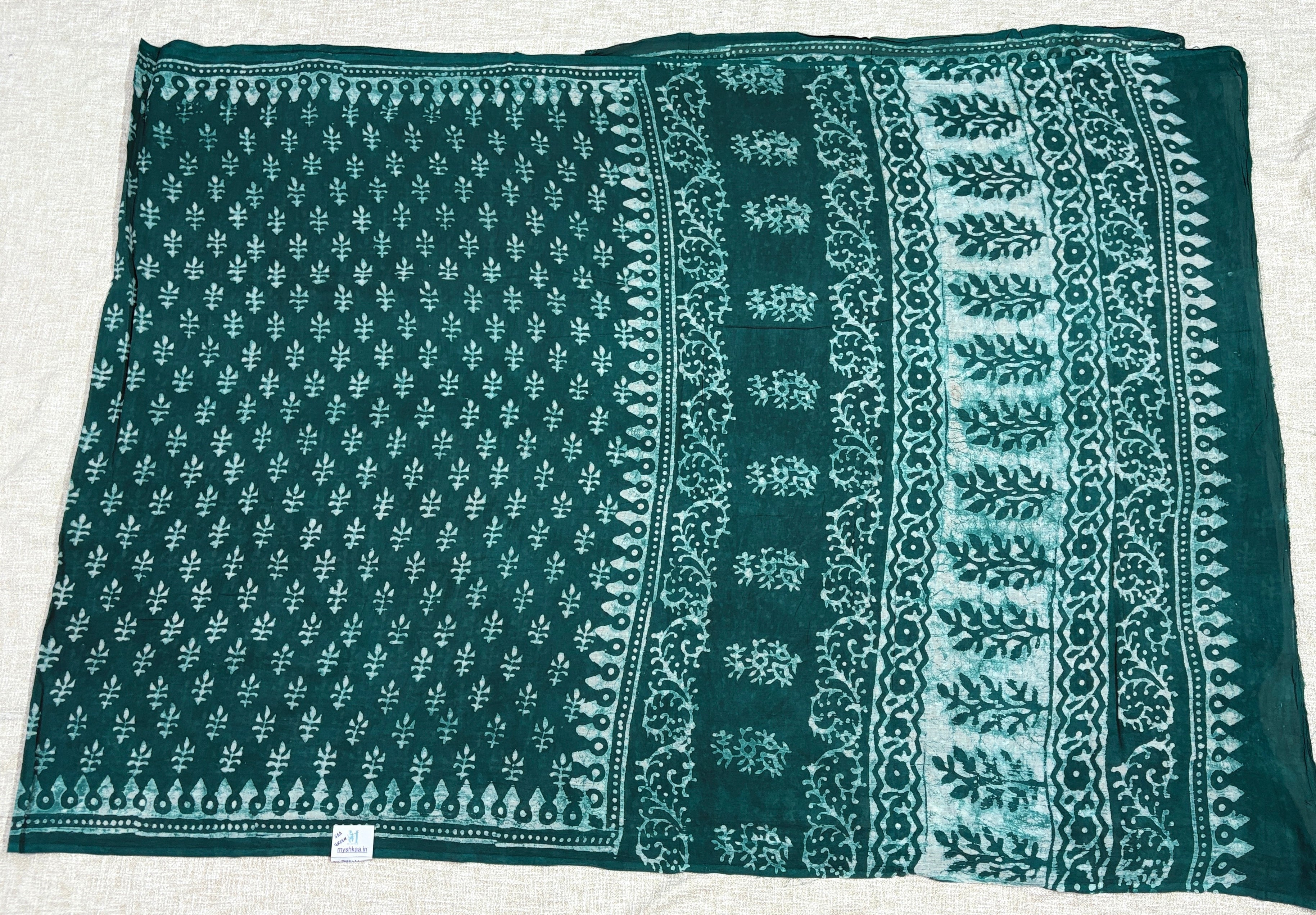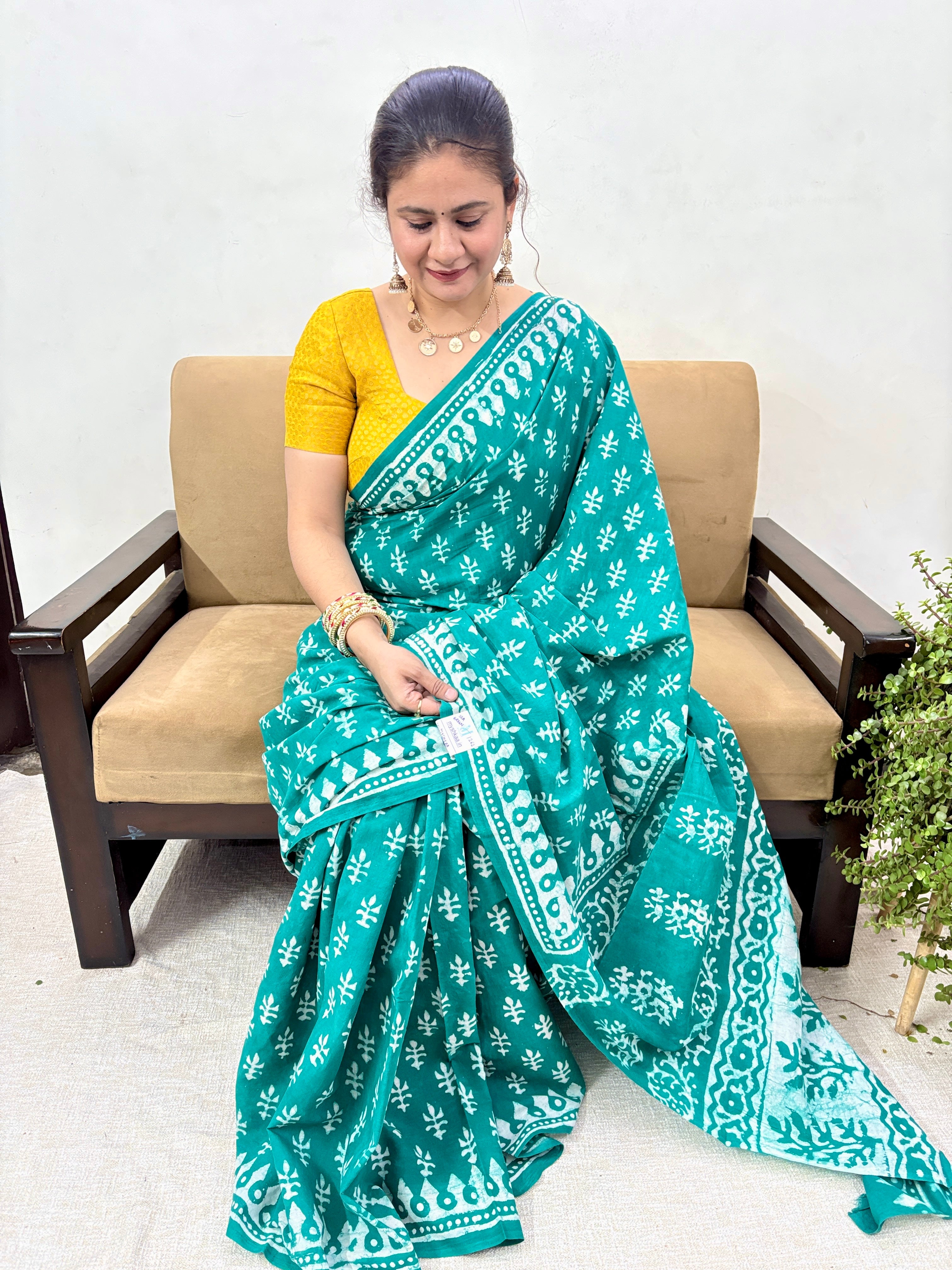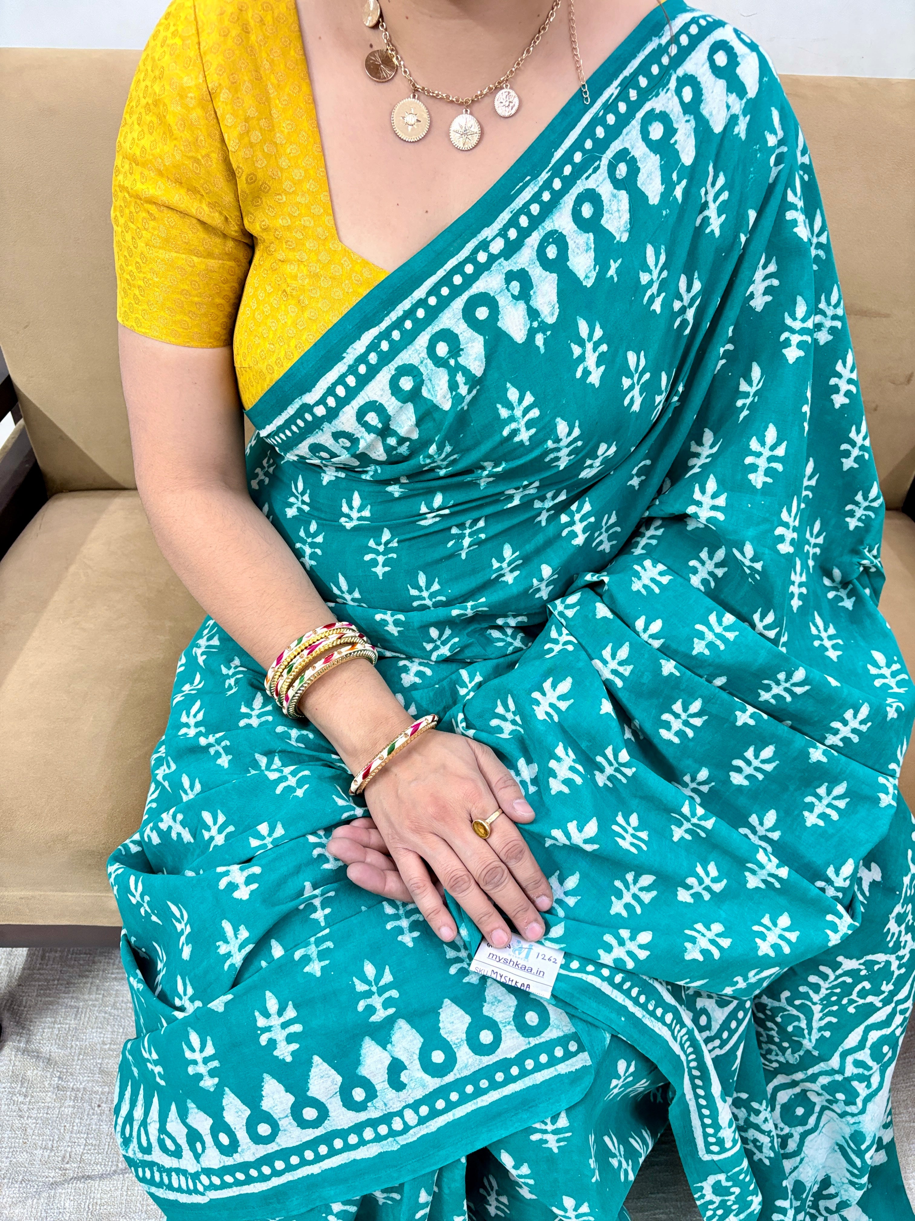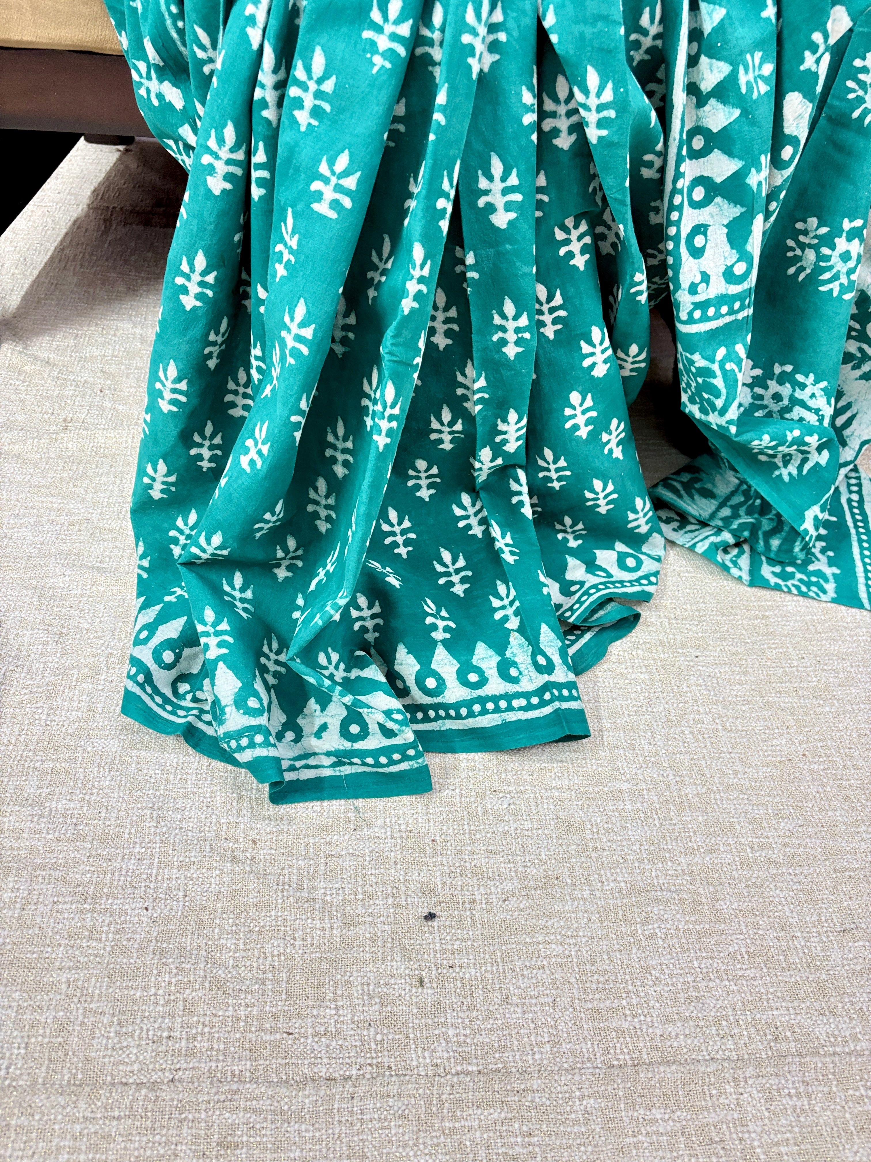 Hand Block Print Cotton Saree with Unstitched Blouse Piece
