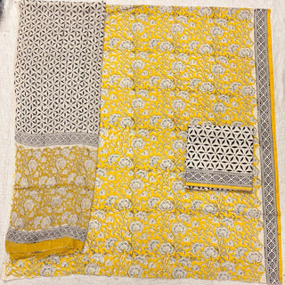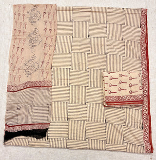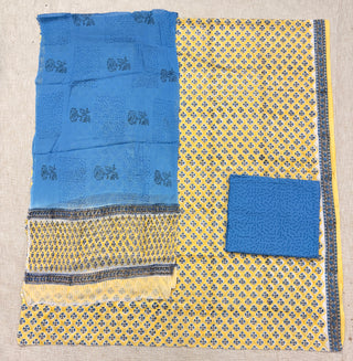 Premium Cotton Handblock Suit fabric with Chiffon Dupatta