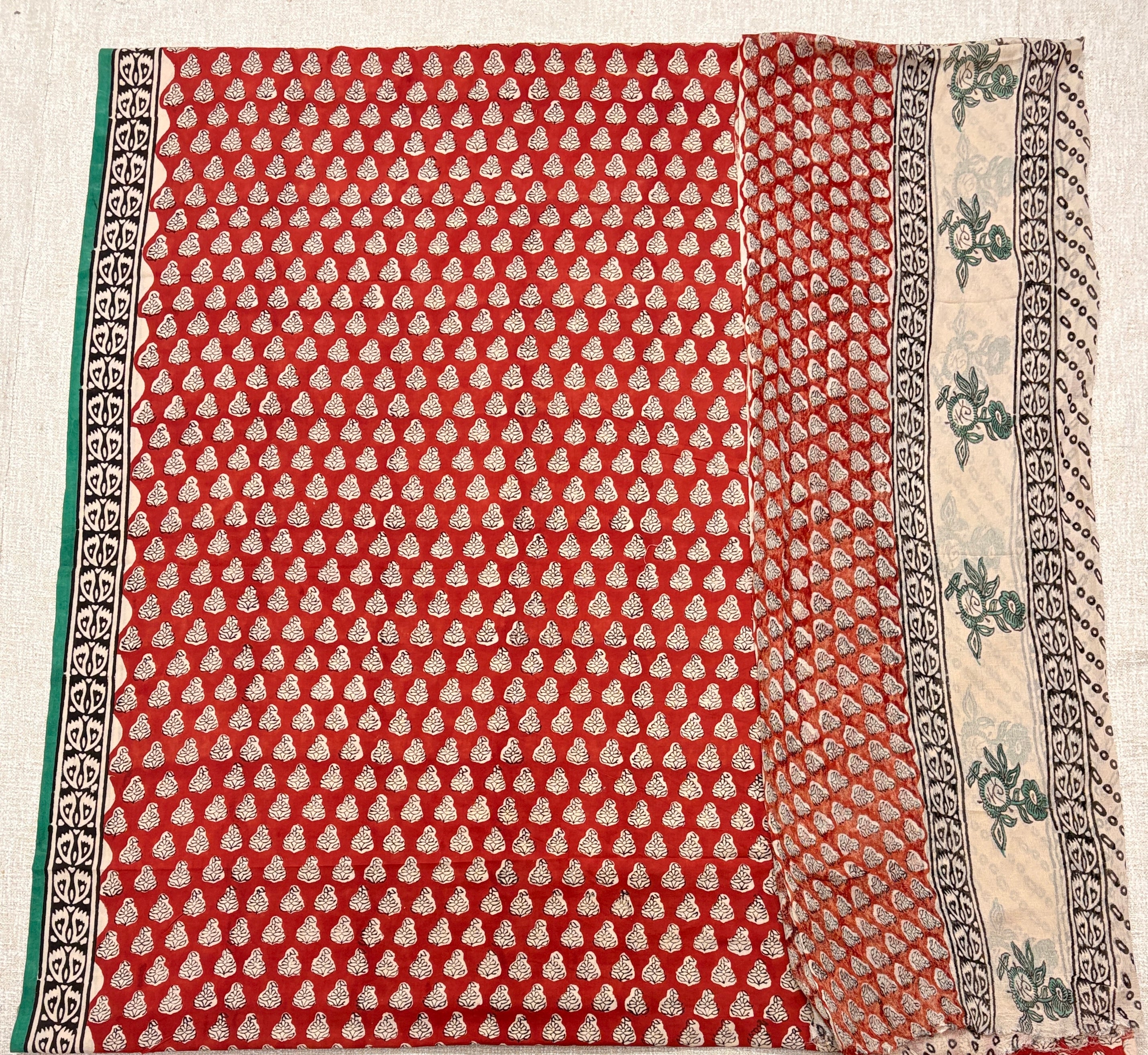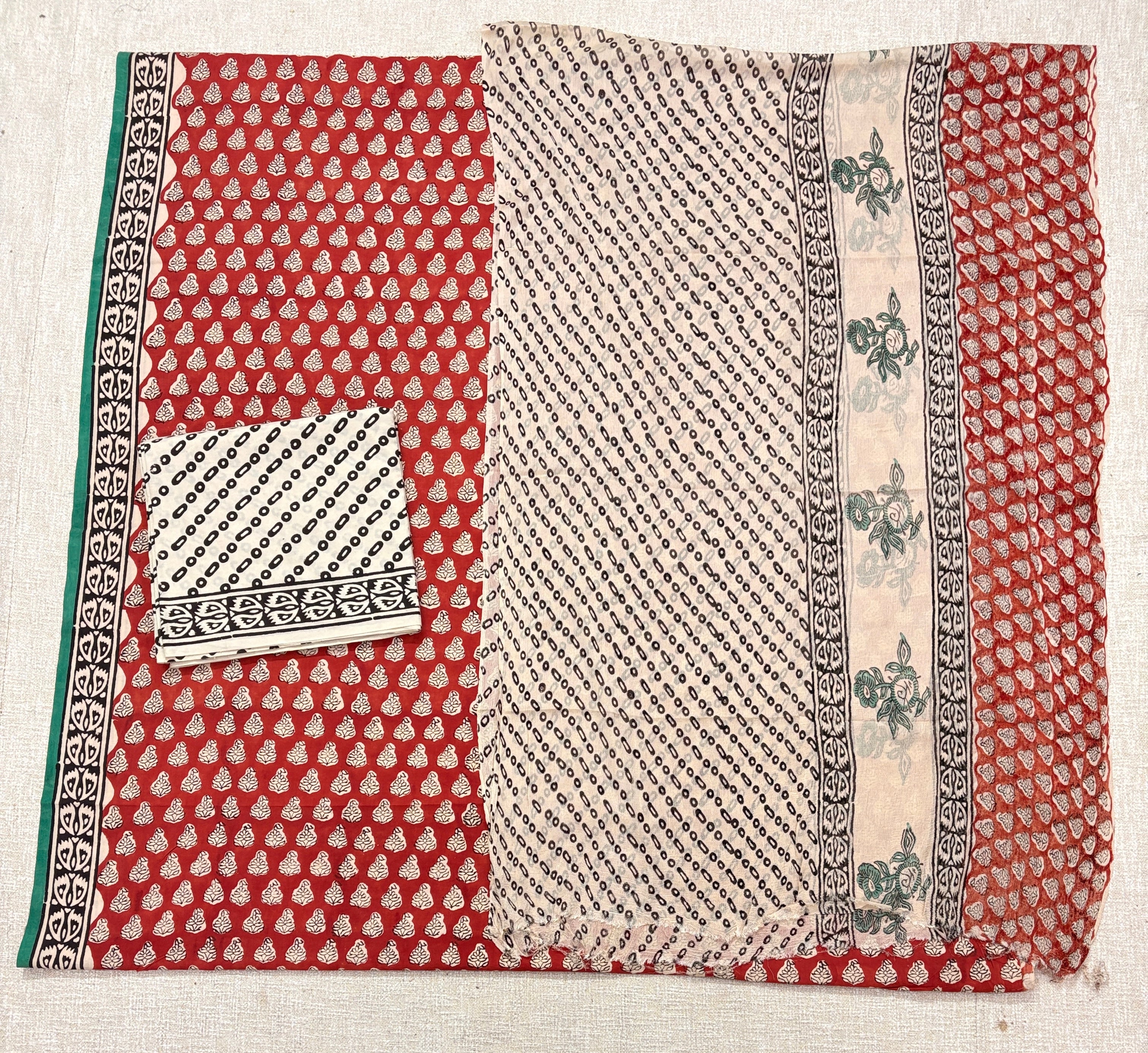 Premium Cotton Handblock Suit fabric with Chiffon Dupatta
