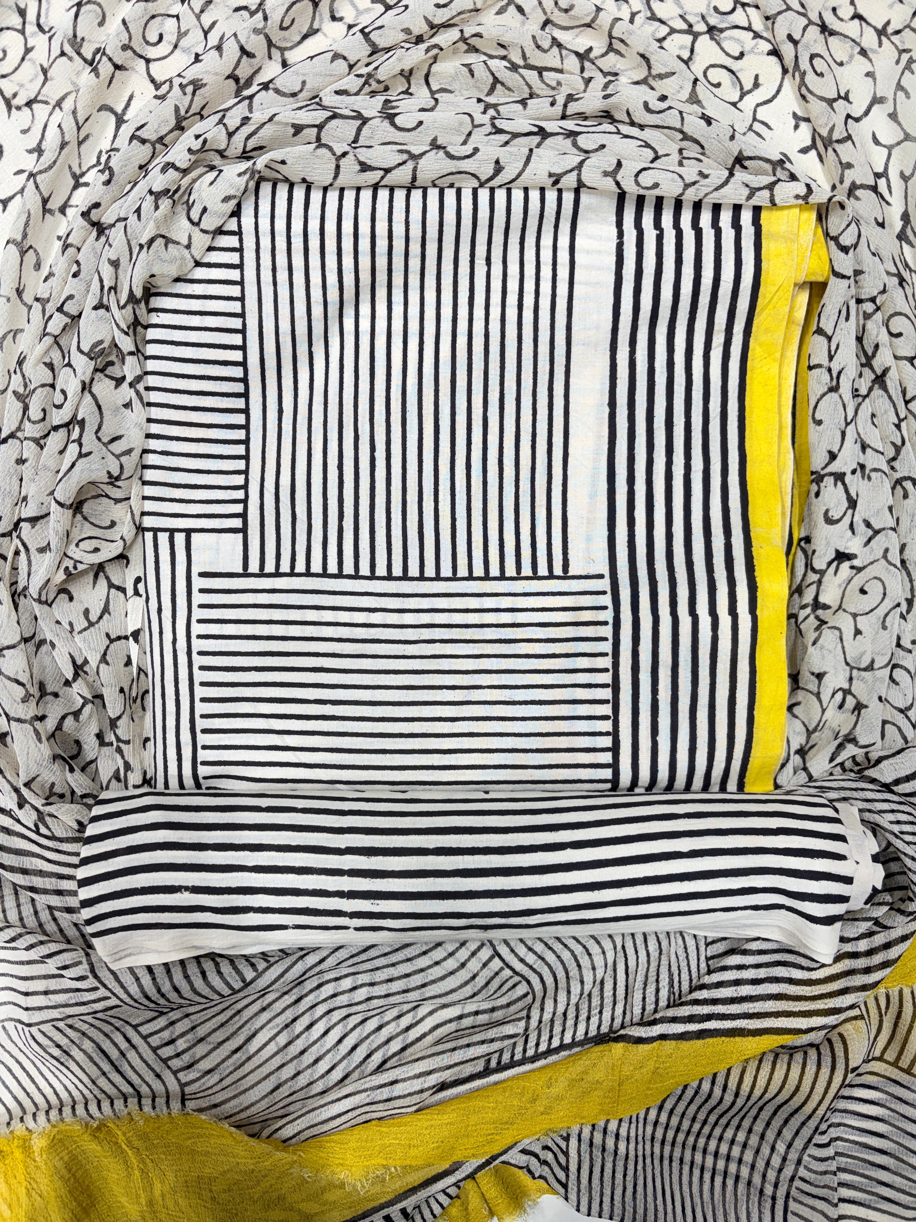 Premium Cotton Handblock Suit fabric with Chiffon Dupatta