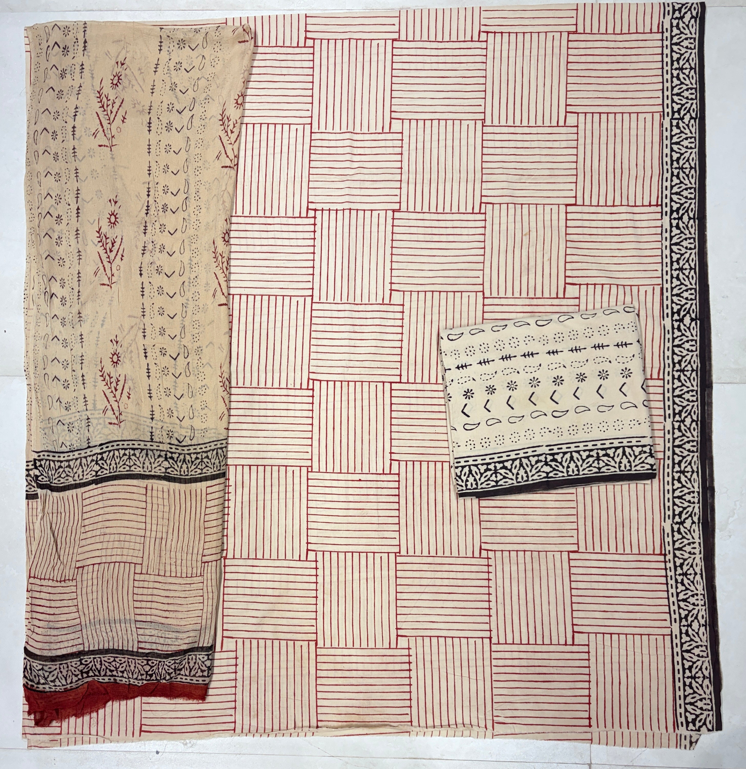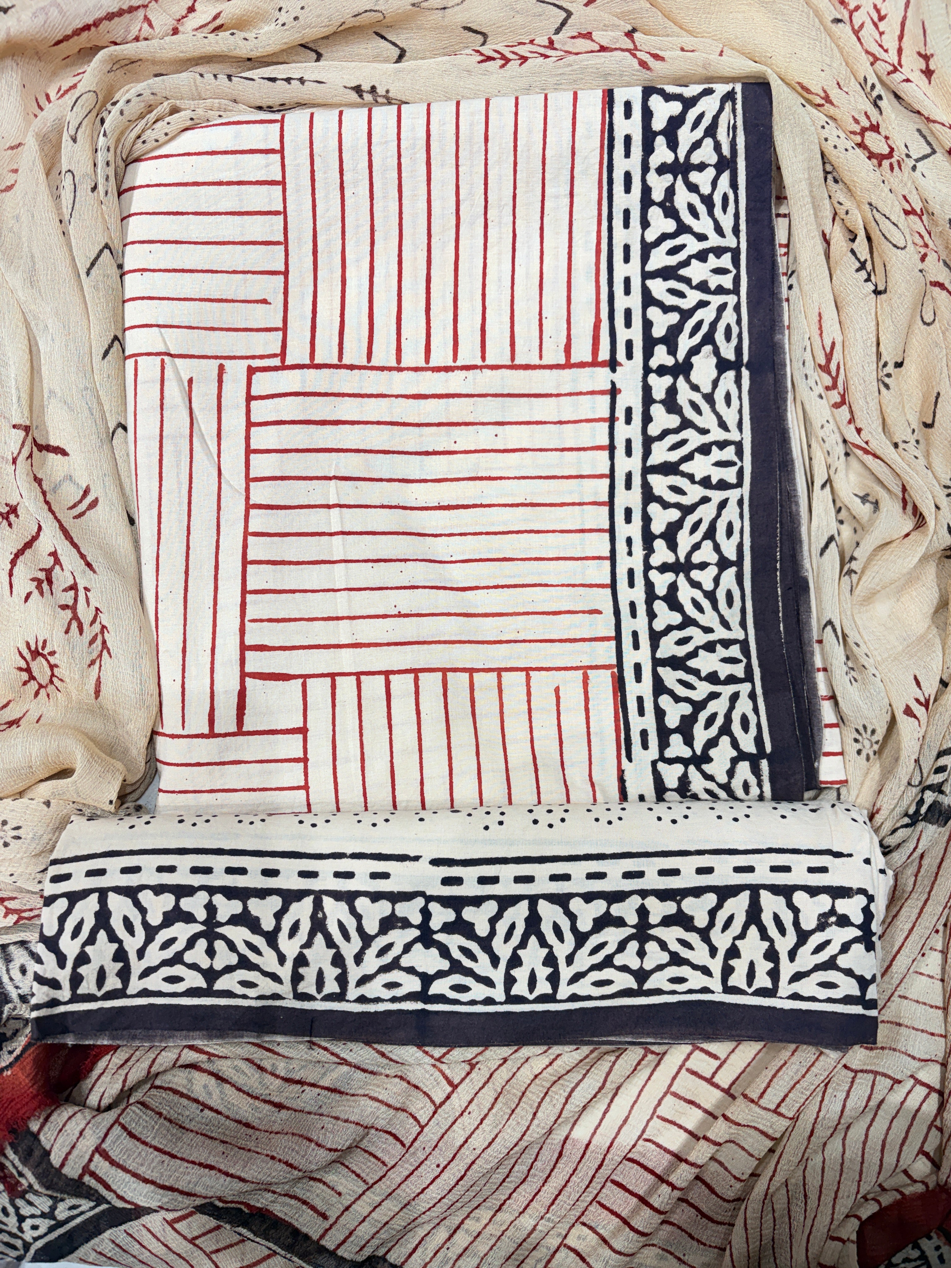 Premium Cotton Handblock Suit fabric with Chiffon Dupatta