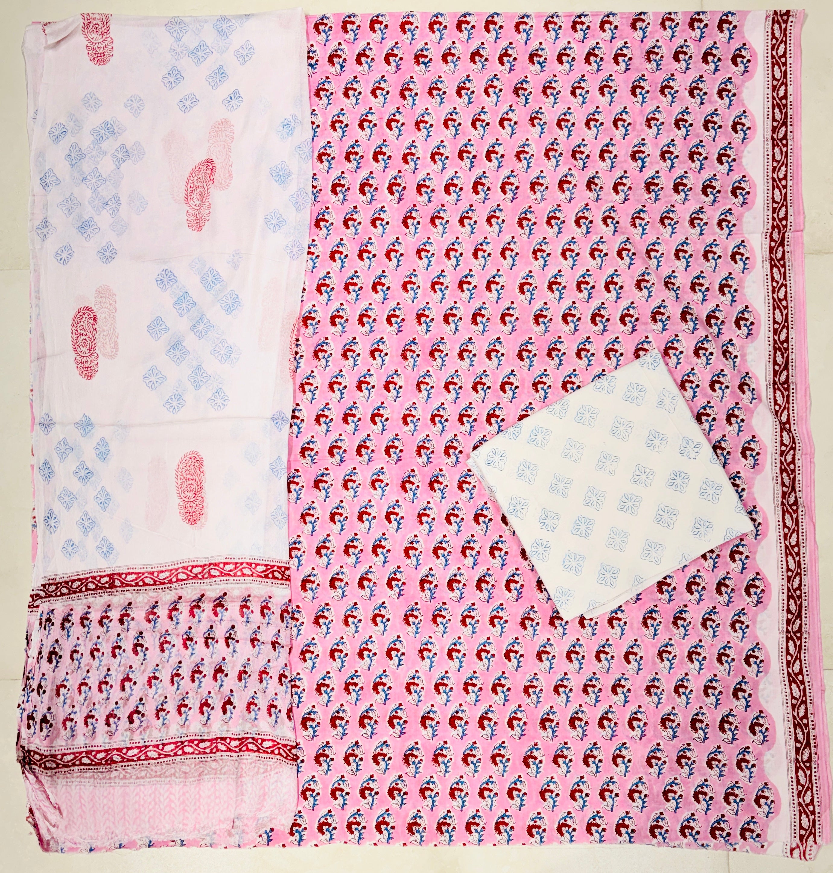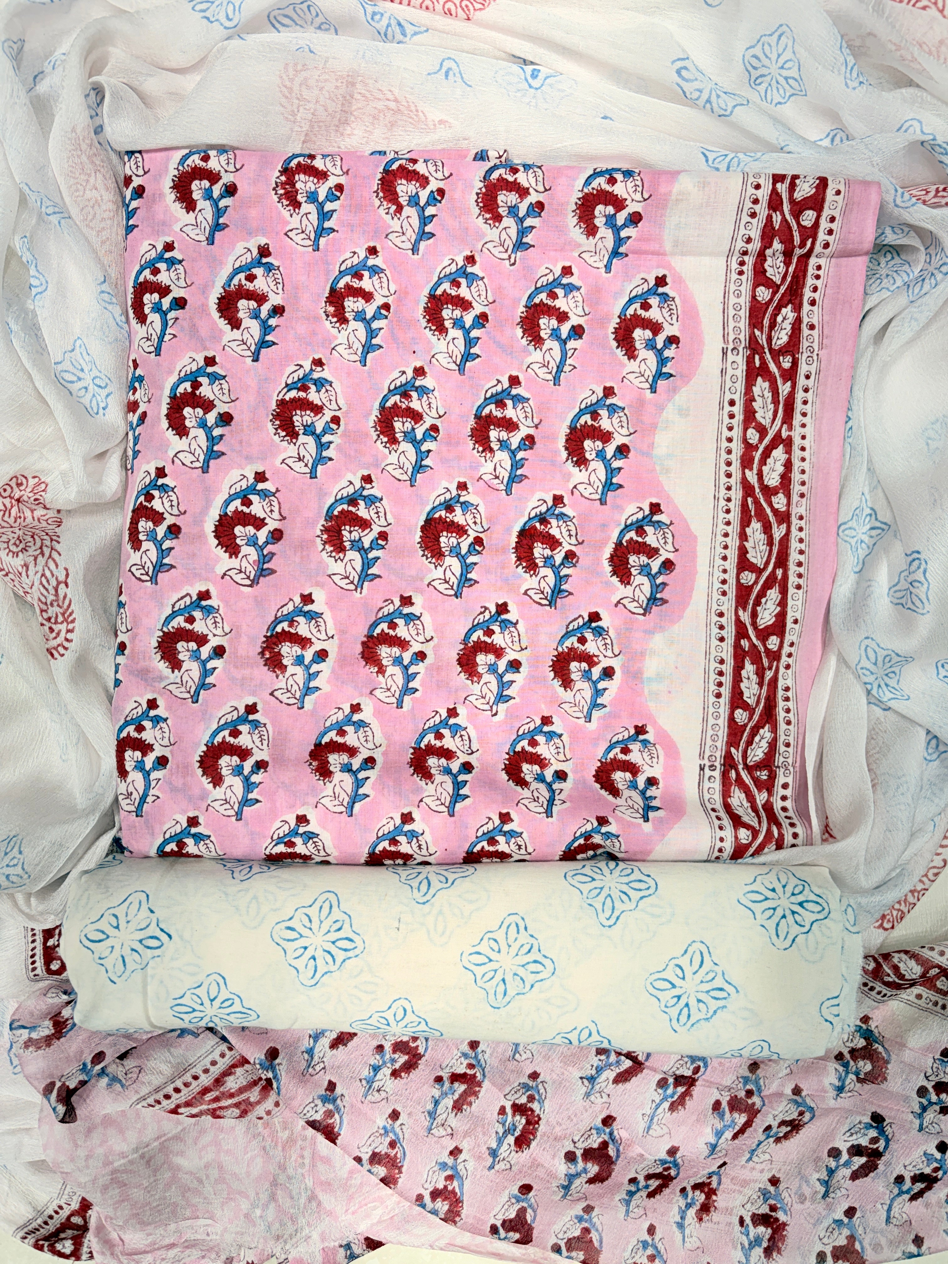 Premium Cotton Handblock Suit fabric with Chiffon Dupatta