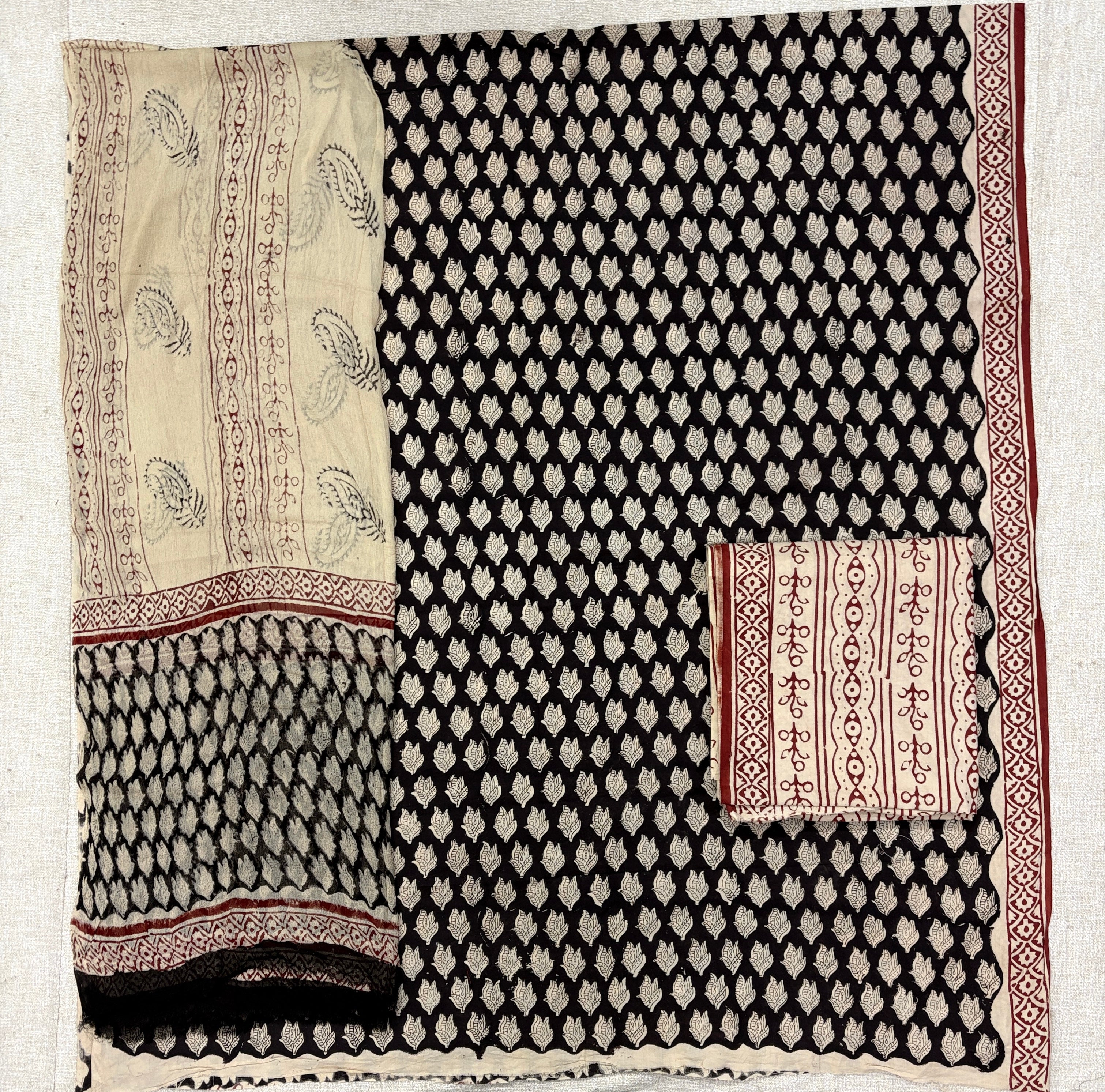 Premium Cotton Handblock Suit fabric with Chiffon Dupatta