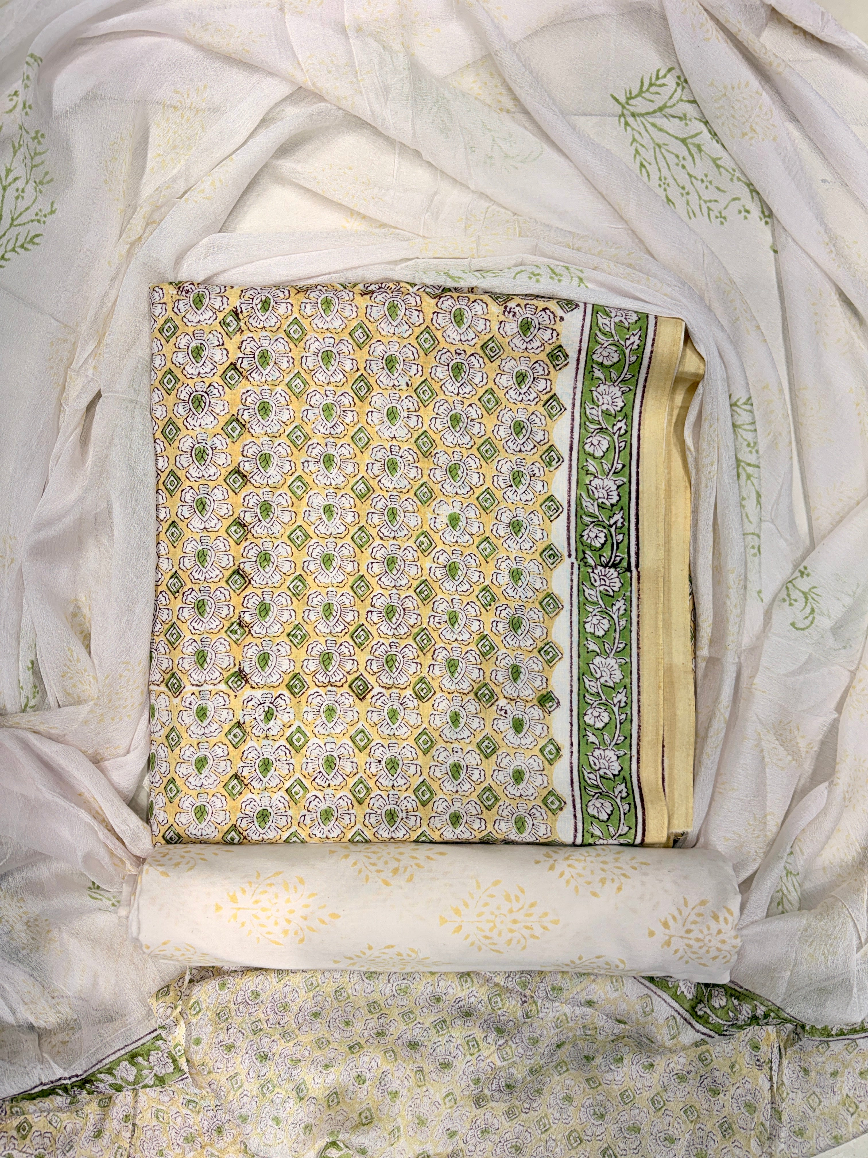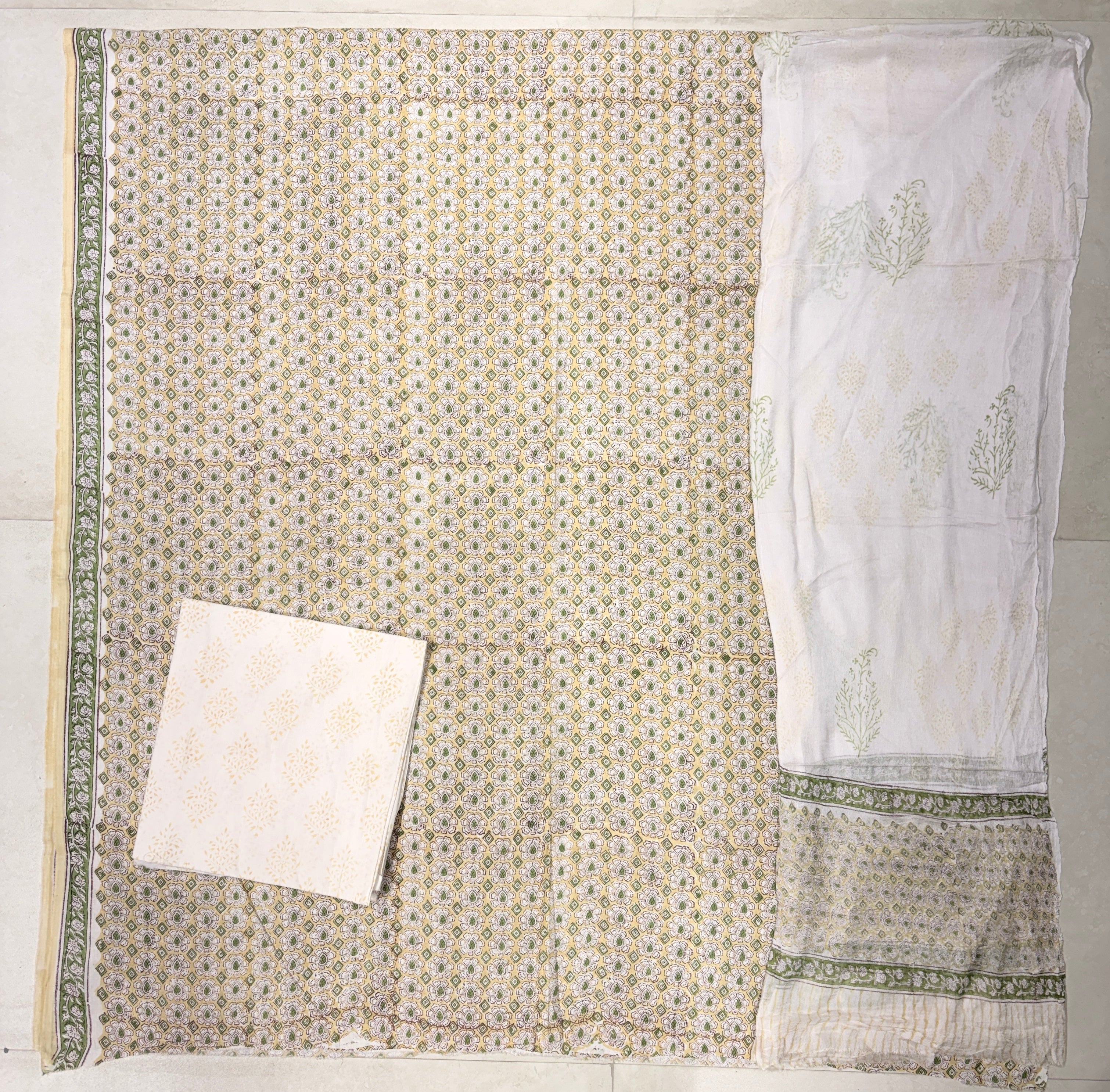 Premium Cotton Handblock Suit fabric with Chiffon Dupatta