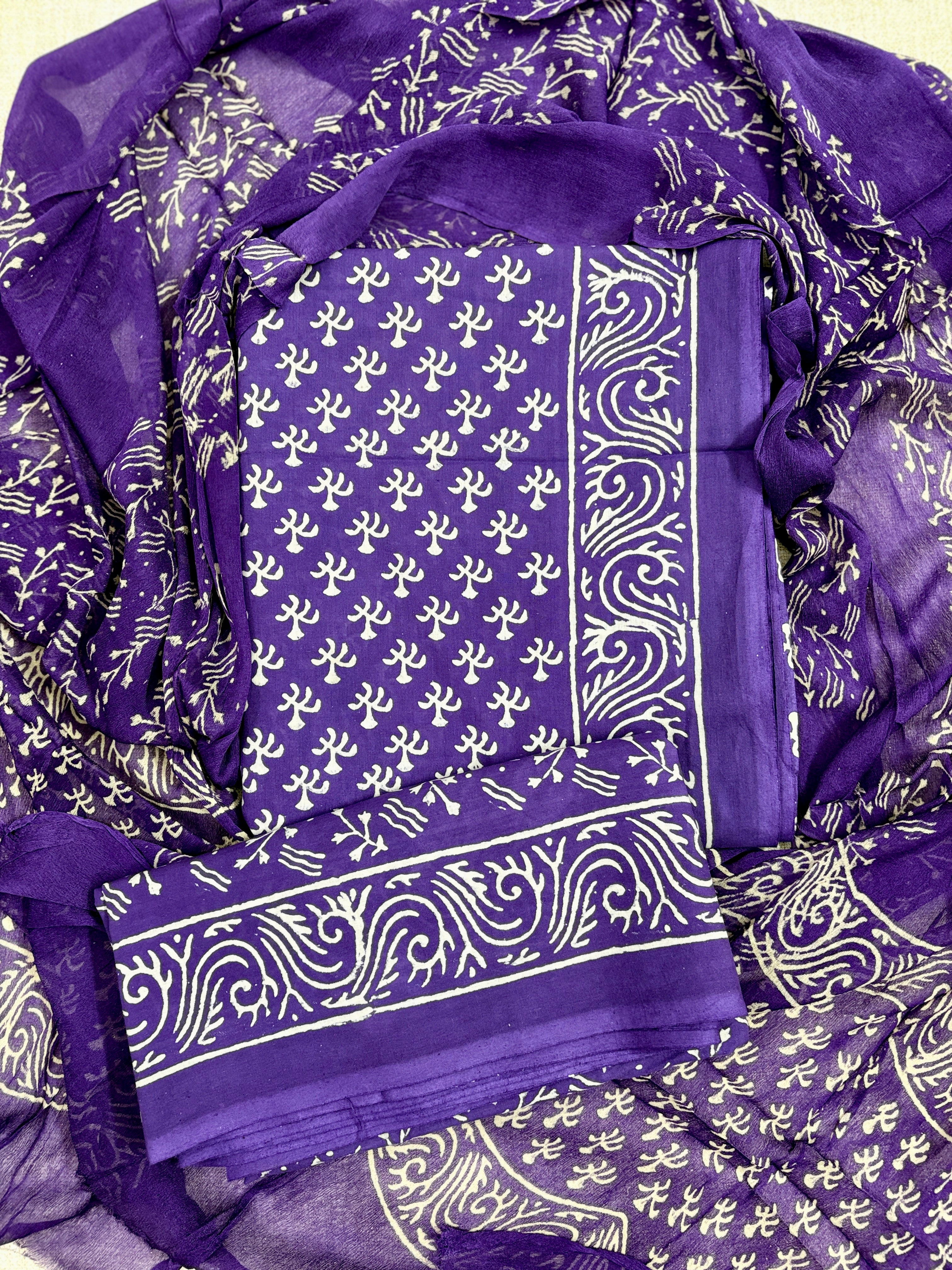Premium Cotton Handblock Suit fabric with Chiffon Dupatta