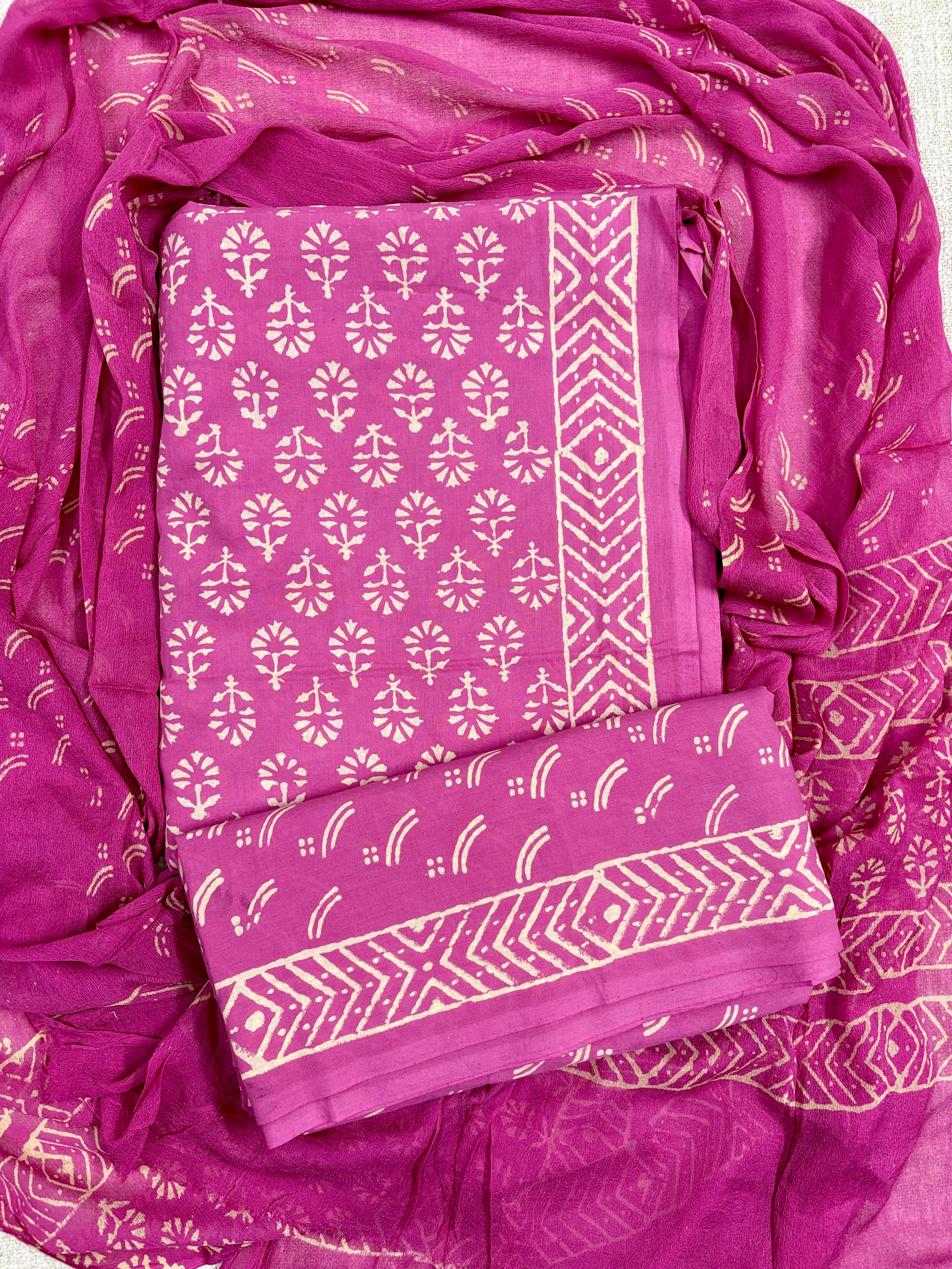 Premium Cotton Handblock Suit fabric with Chiffon Dupatta