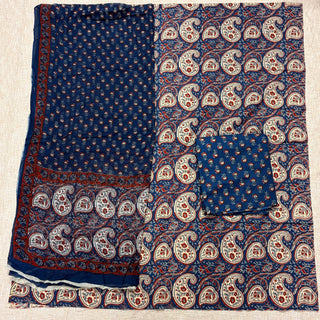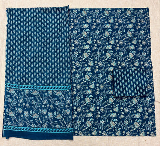 Indigo color Handblock Office Wear Suit fabric with pure cotton Dupatta