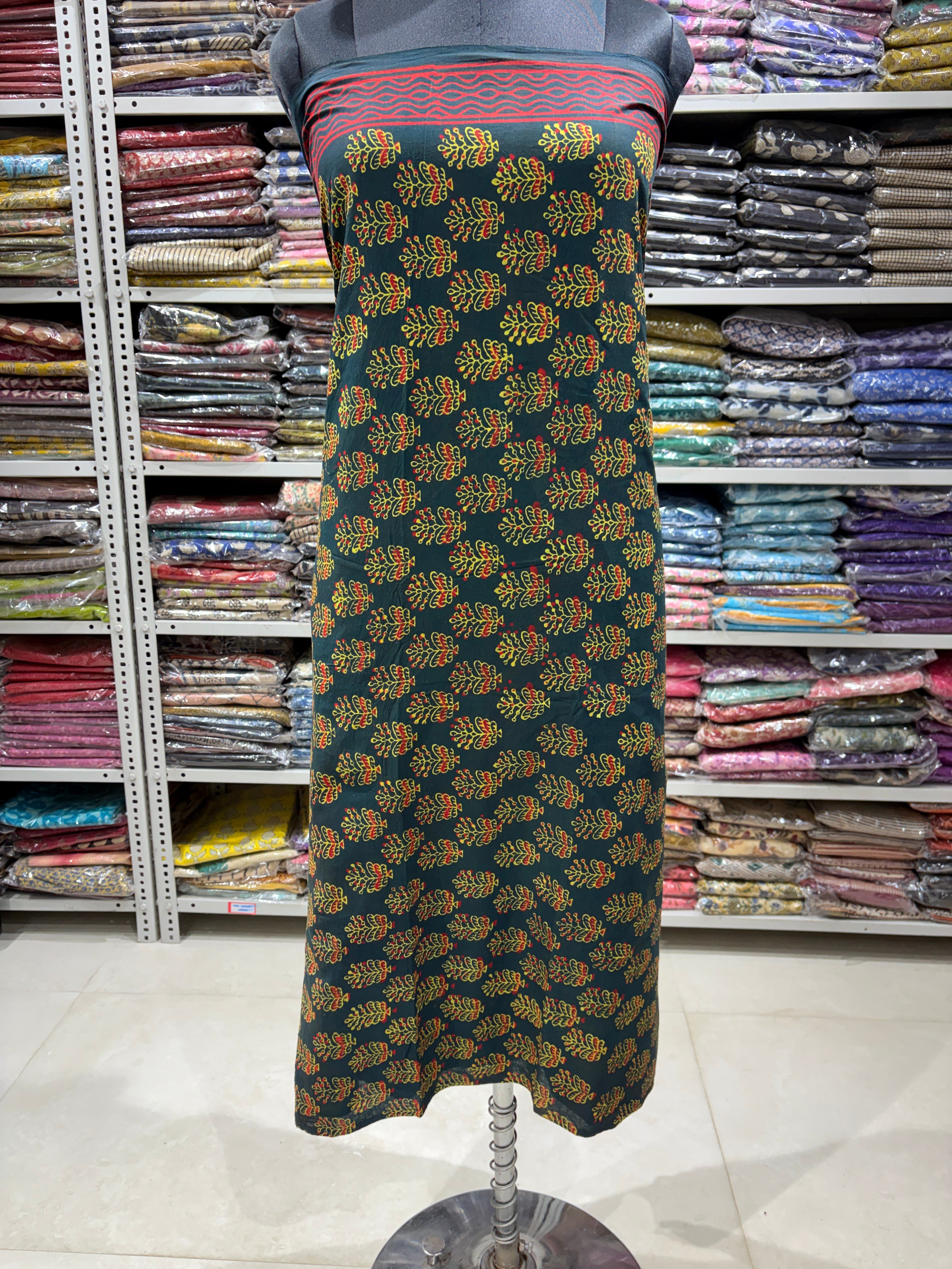 Ajrakh Cotton Handblock Office Wear Suit fabric with Kota Doria Dupatta