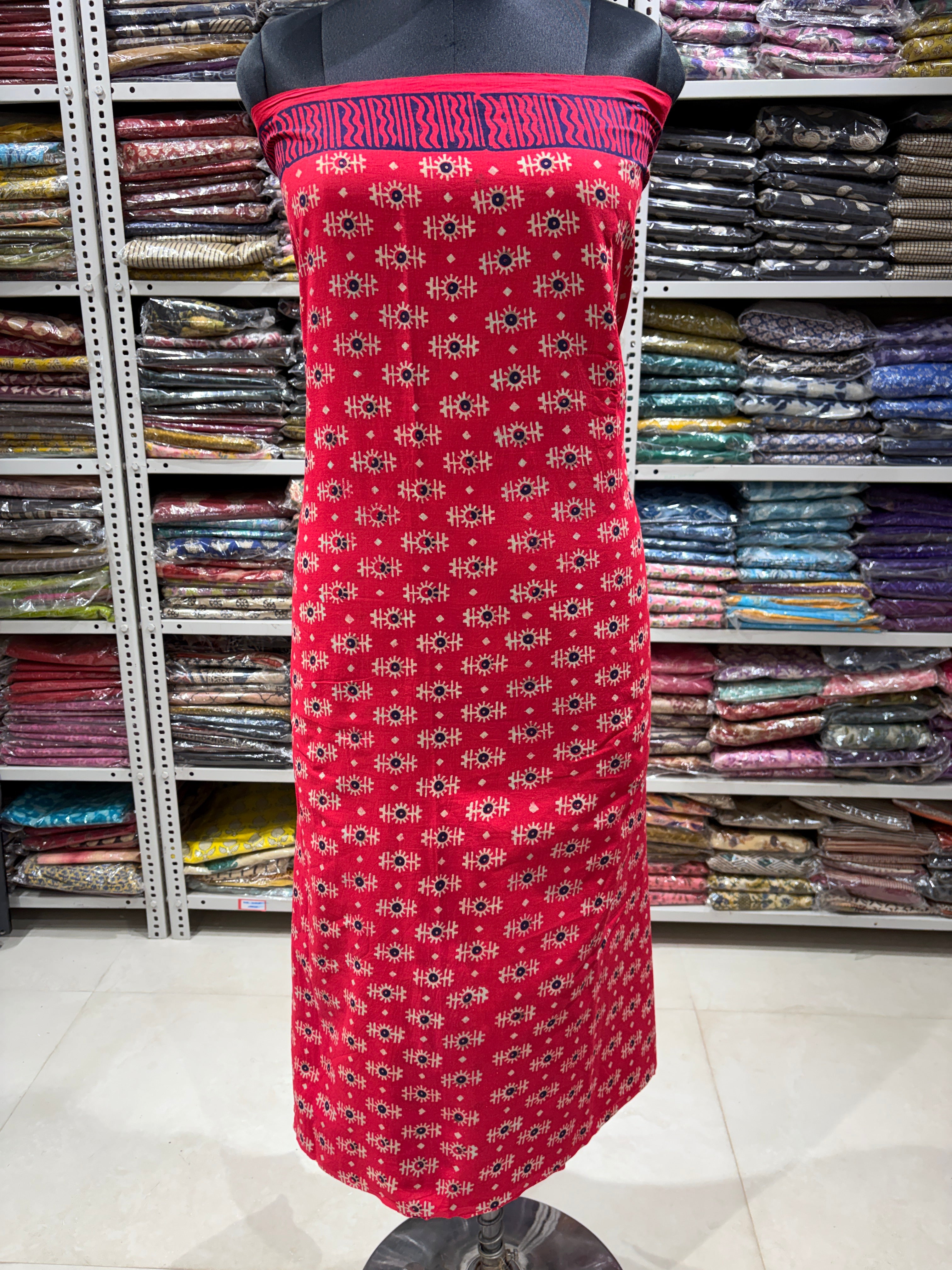 Ajrakh Cotton Handblock Office Wear Suit fabric with Kota Doria Dupatta