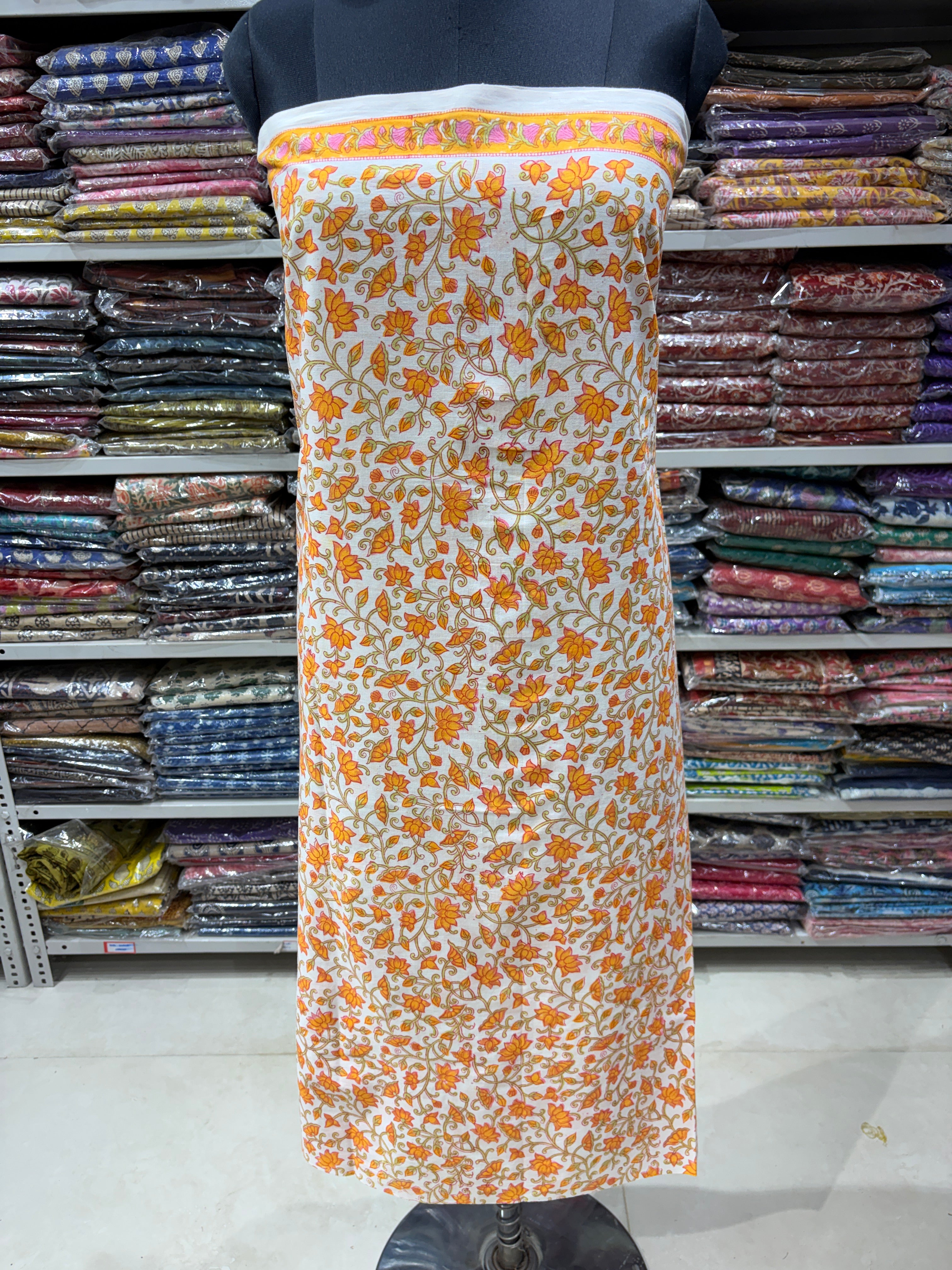Cotton Handblock Office Wear Suit fabric with Kota doria Dupatta