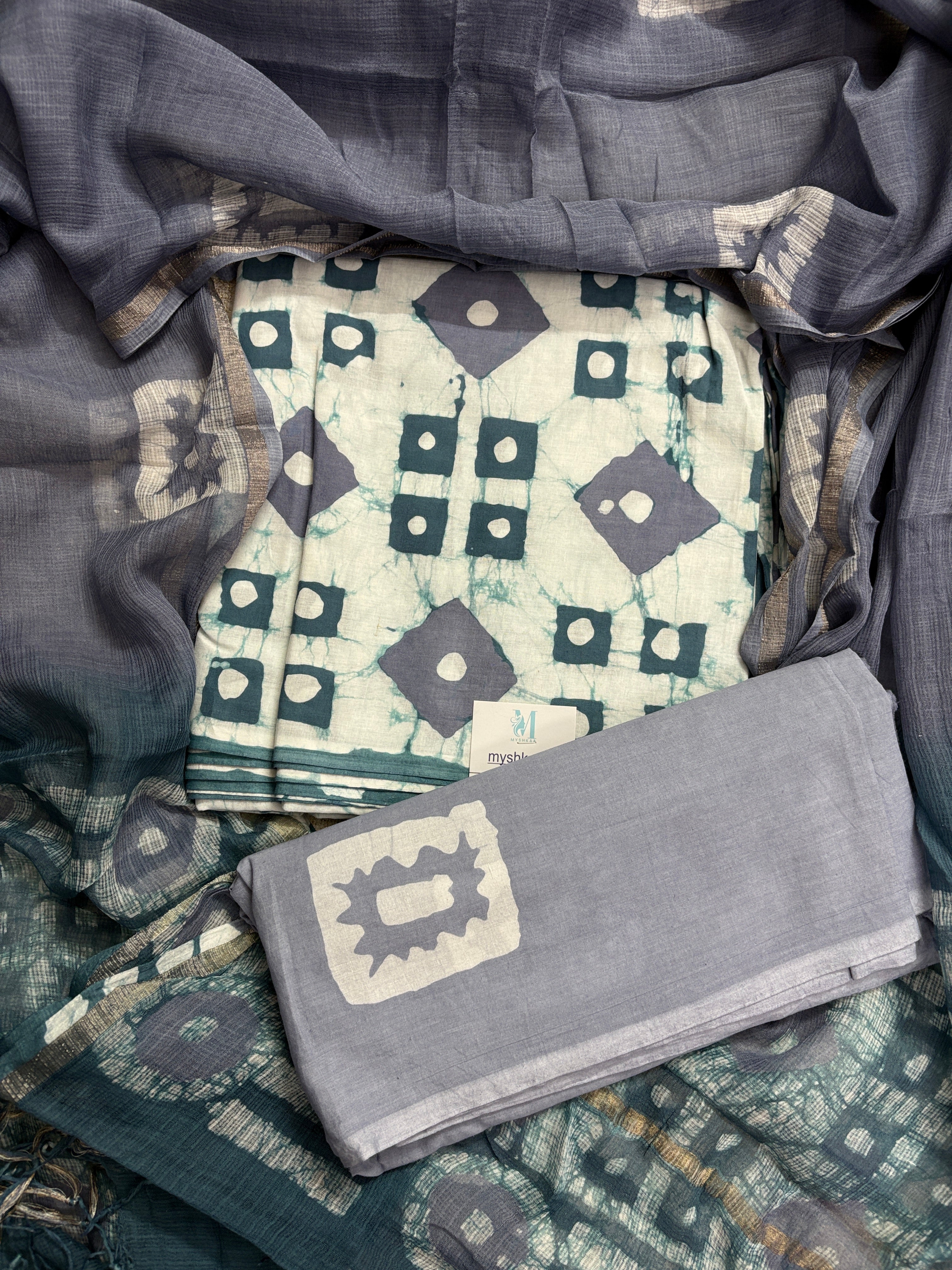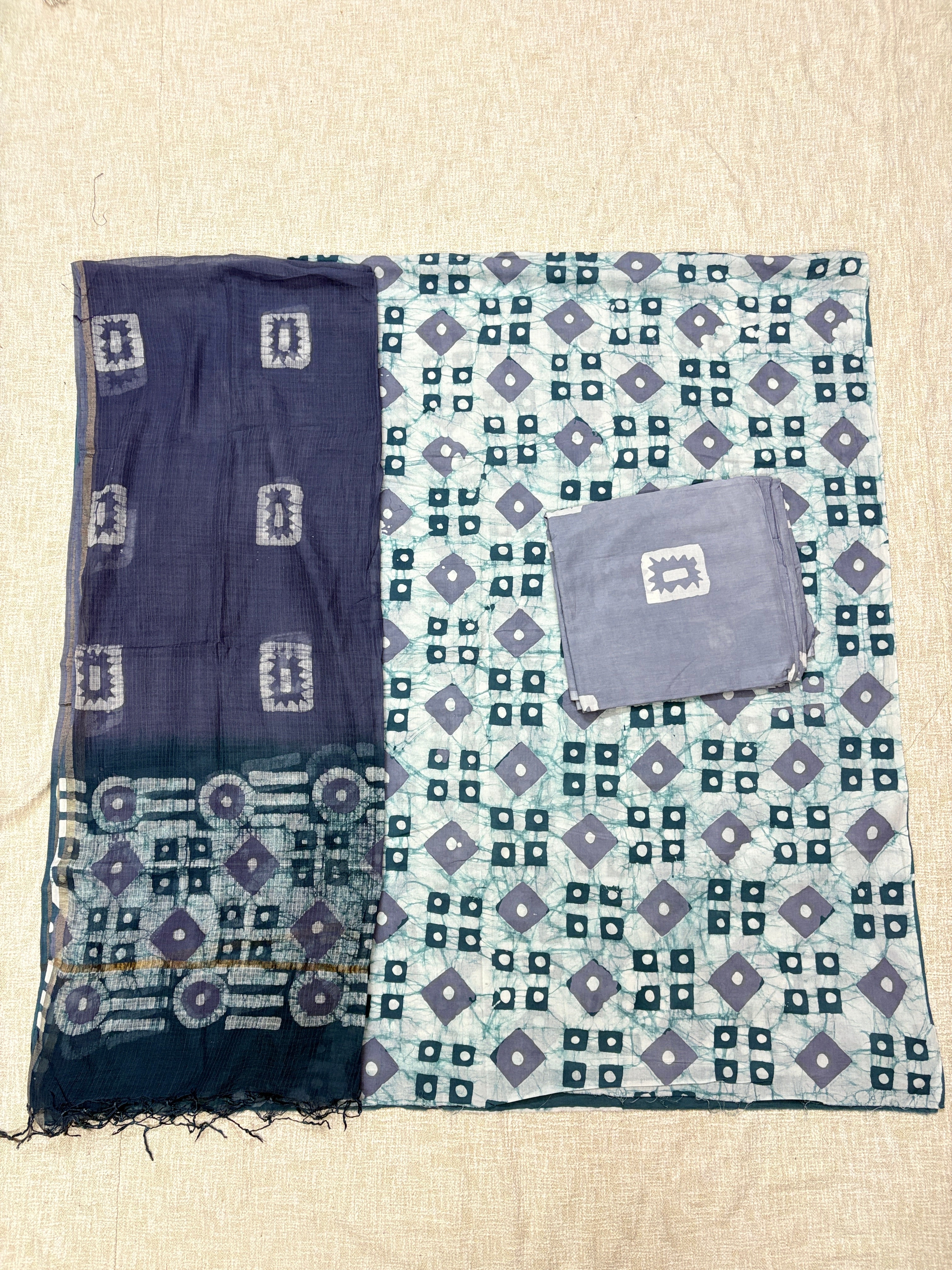 Cotton Handblock Office Wear Suit fabric with Kota Doria Dupatta