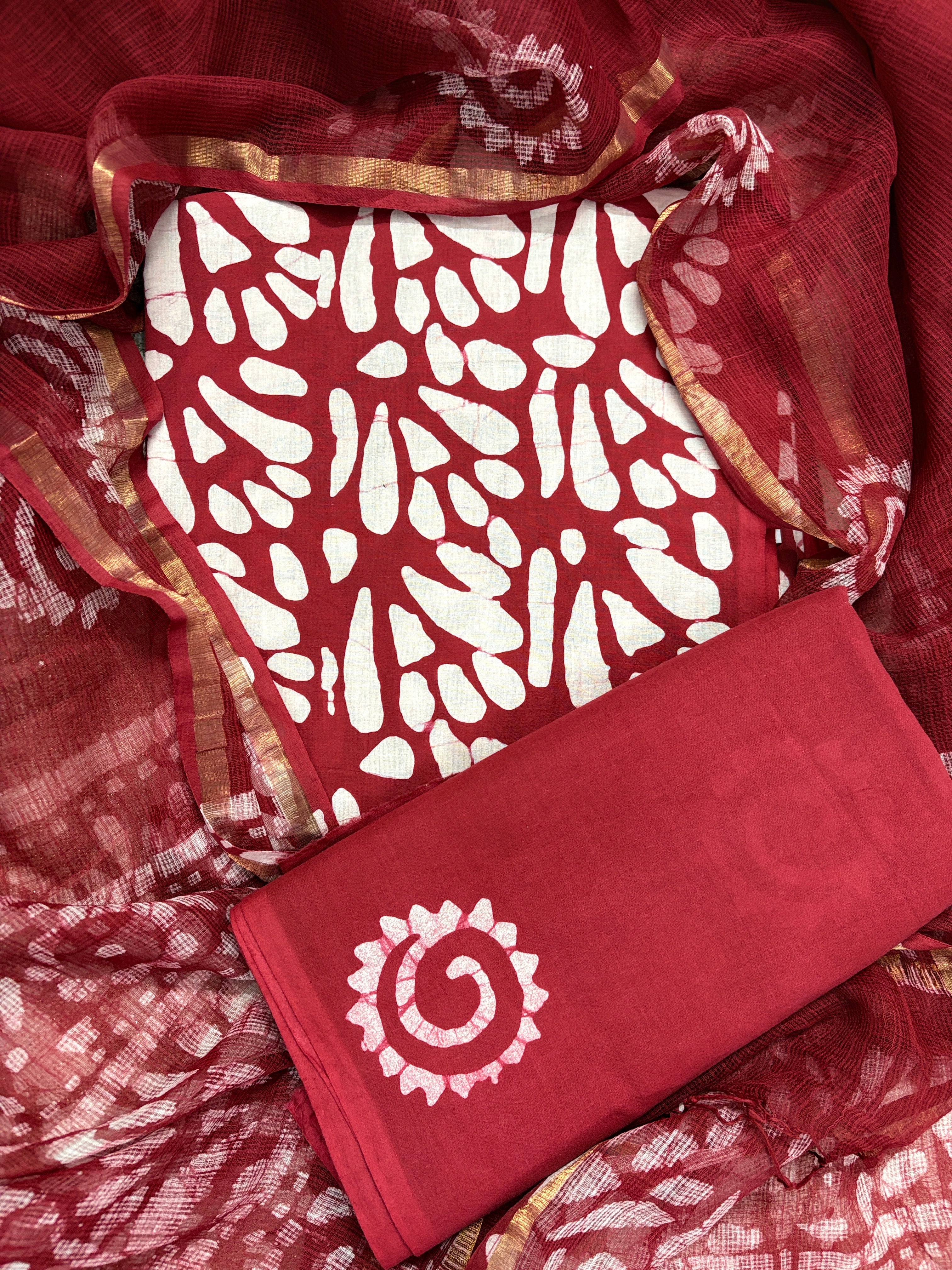 Cotton Handblock Office Wear Suit fabric with Kota Doria Dupatta