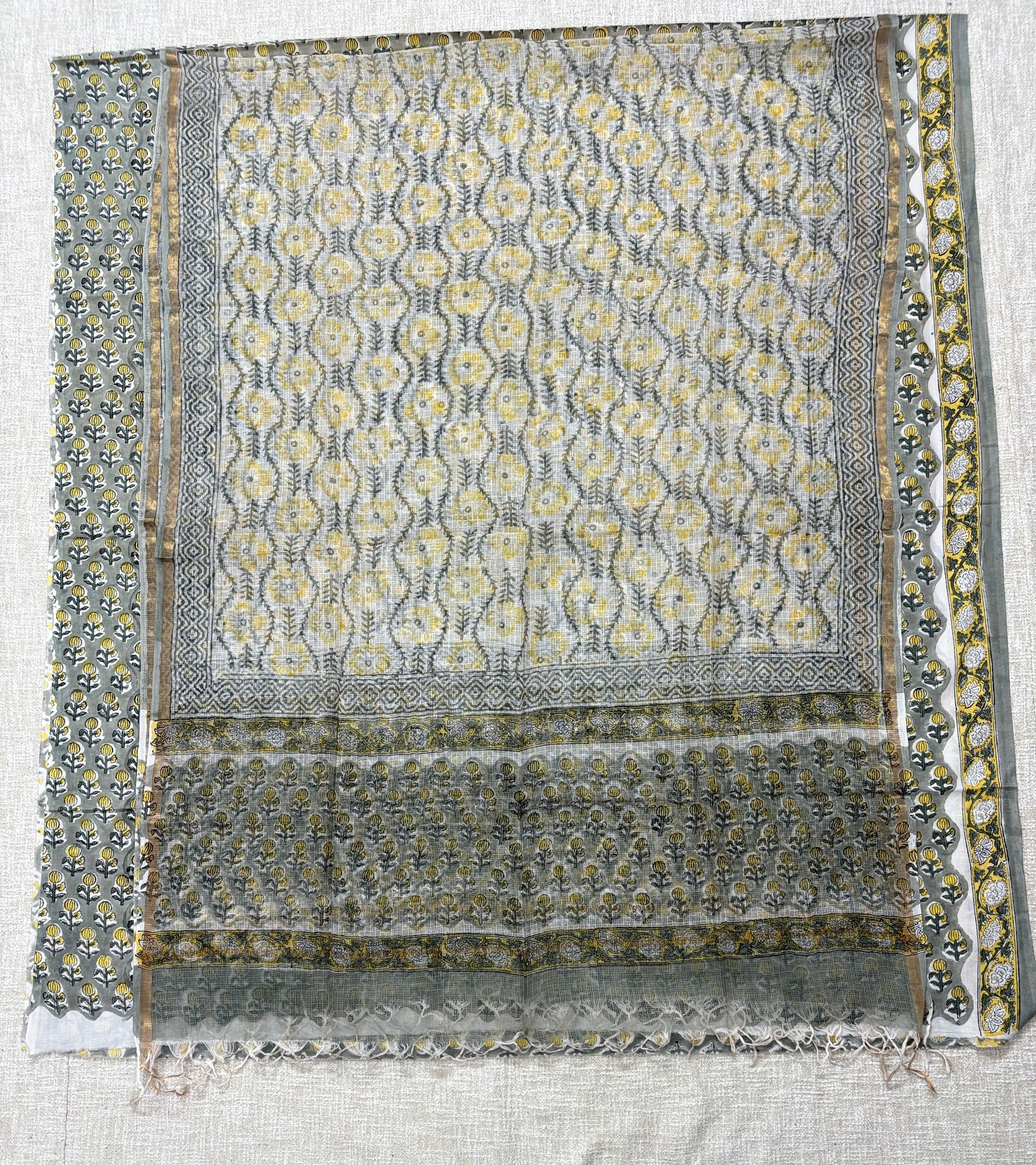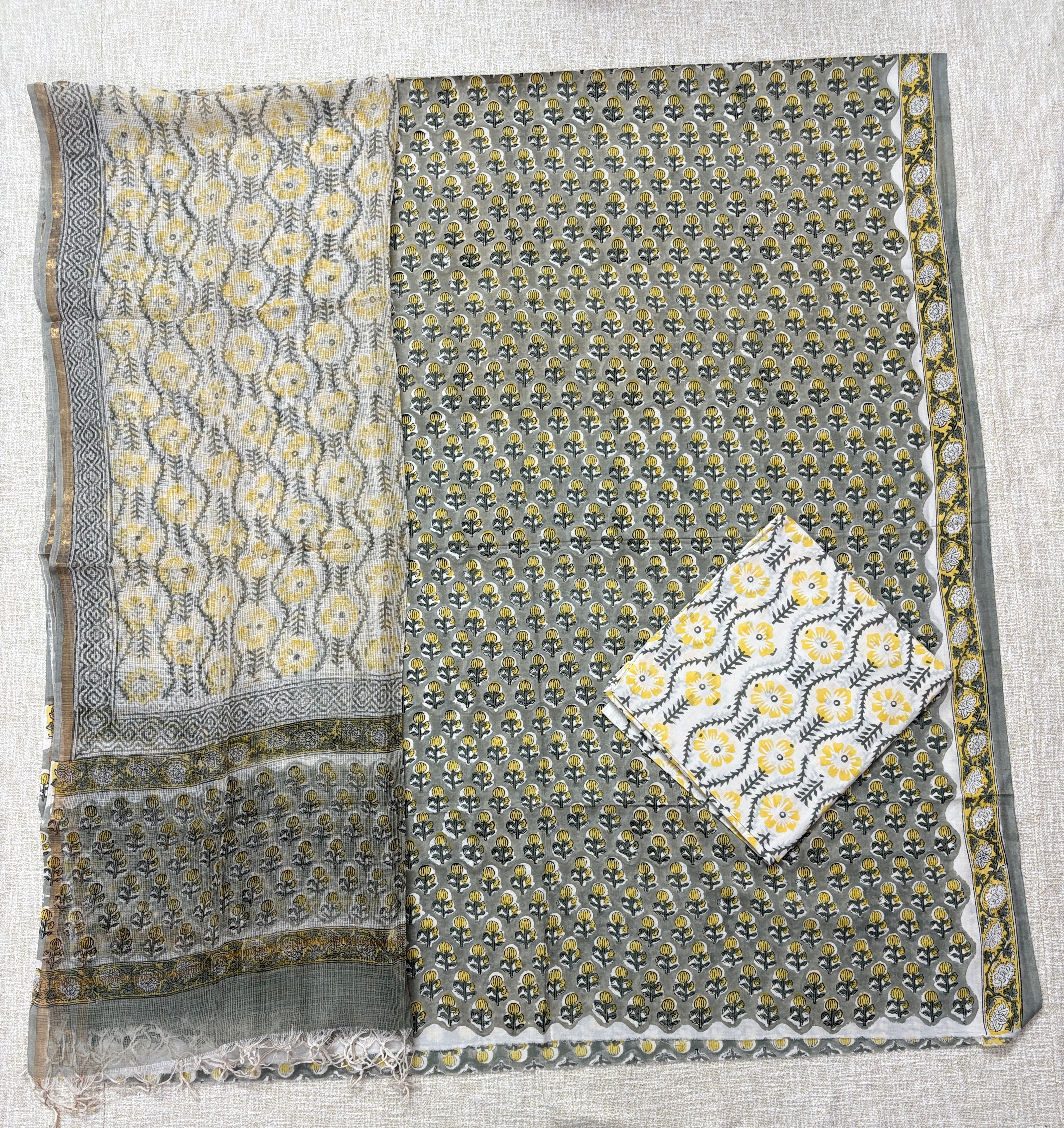 Cotton Handblock Office Wear Suit fabric with Kota Doria Dupatta
