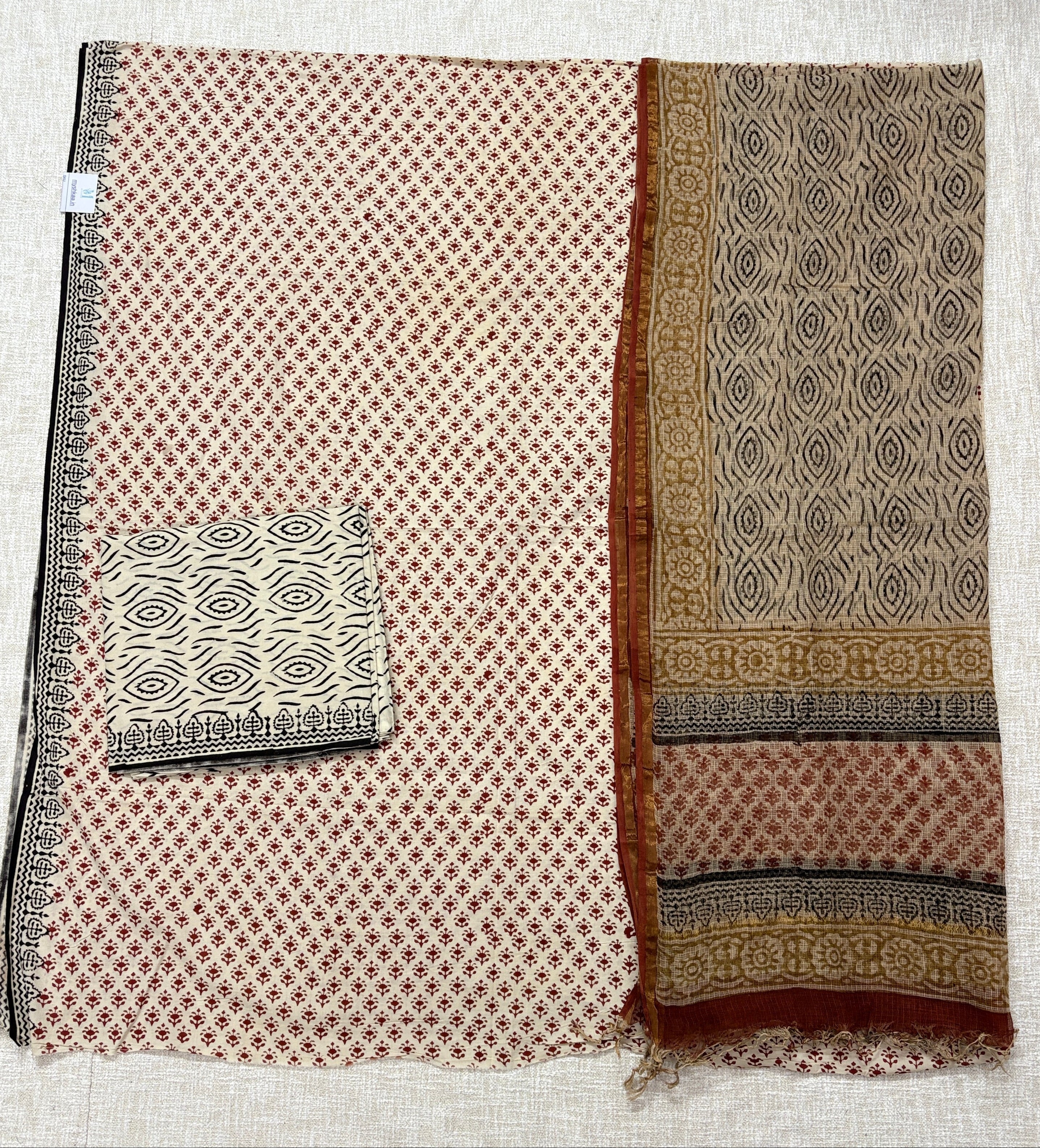 Cotton Handblock Office Wear Suit fabric with Kota Doria Dupatta