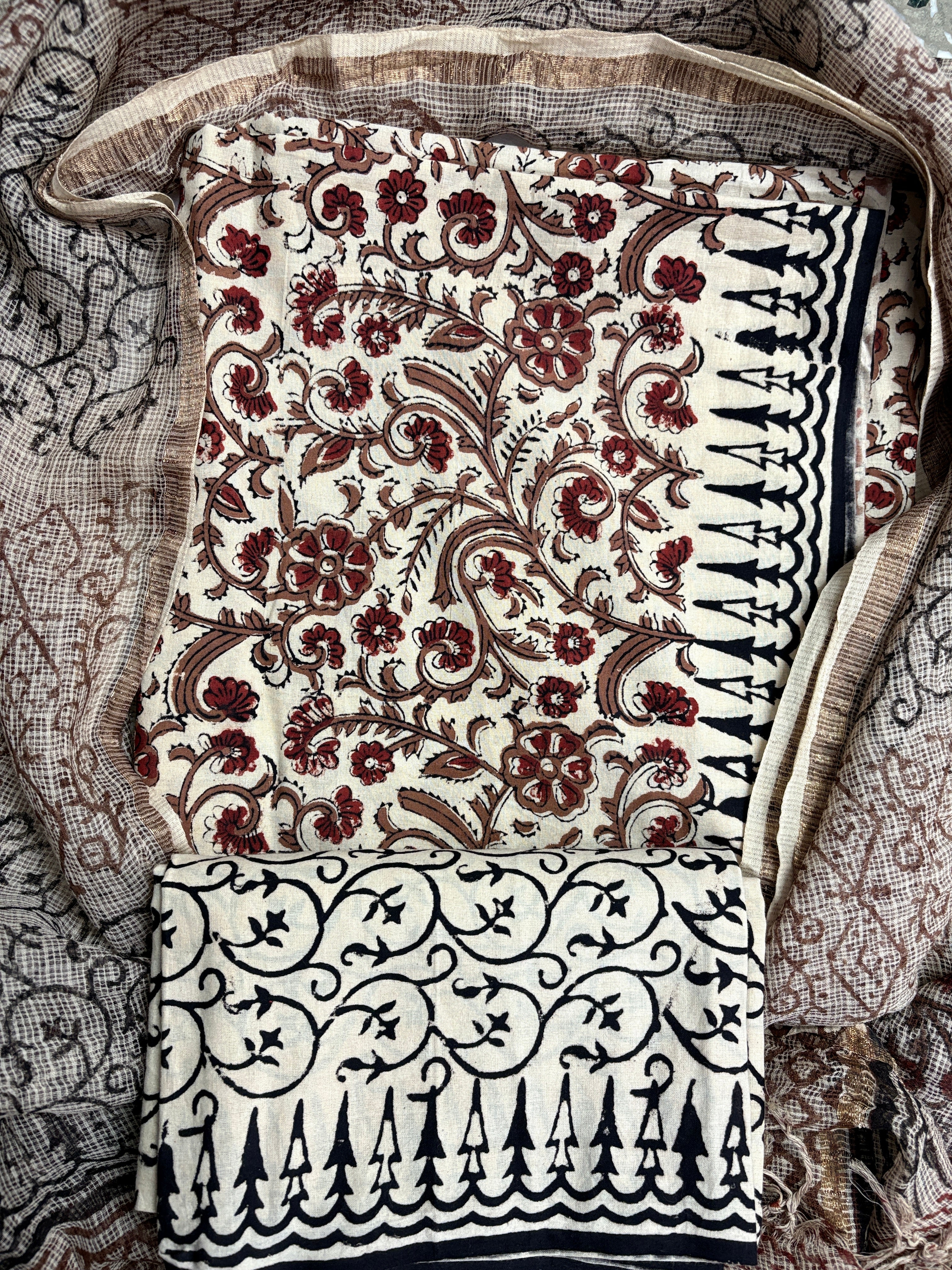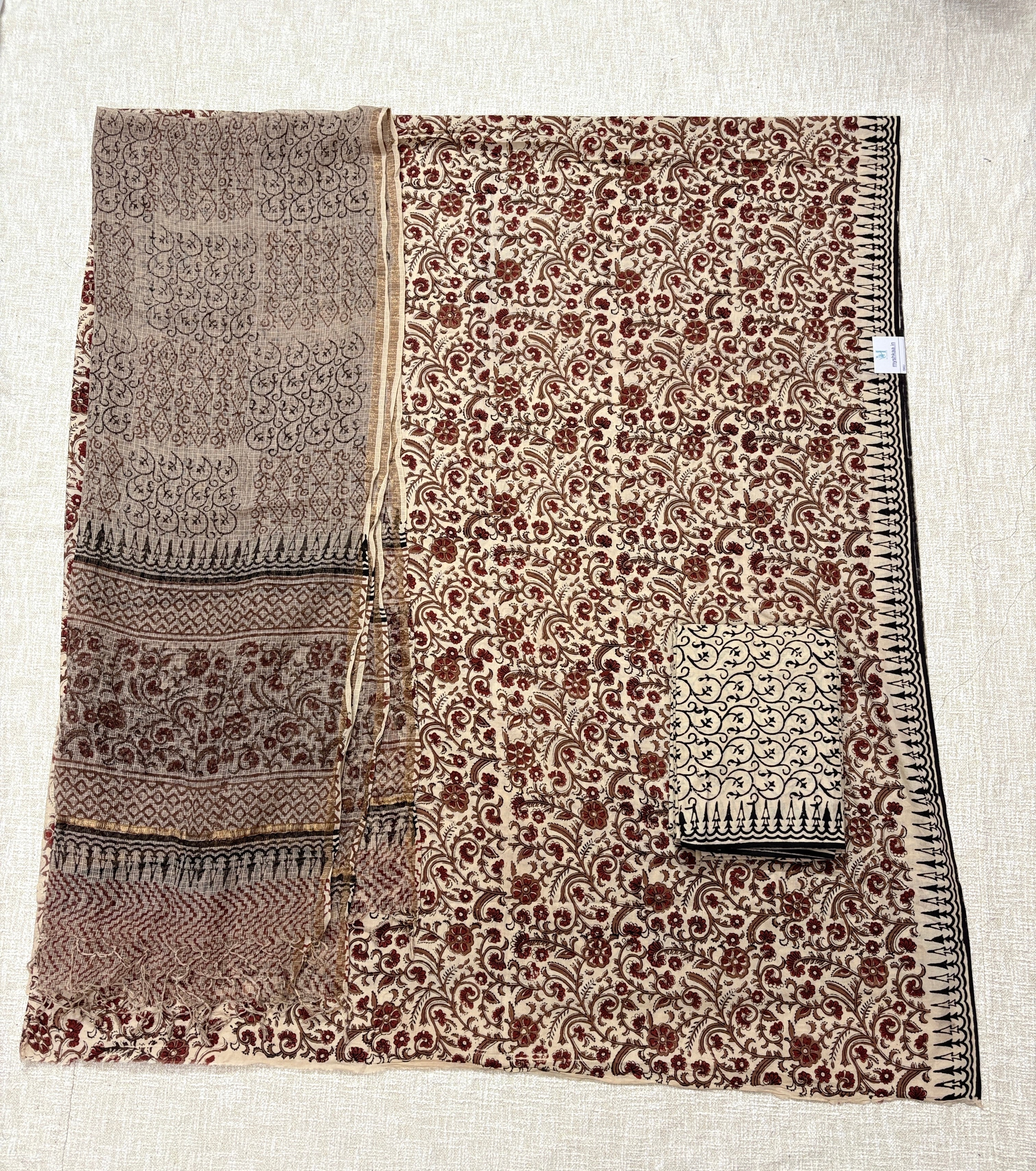 Cotton Handblock Office Wear Suit fabric with Kota Doria Dupatta