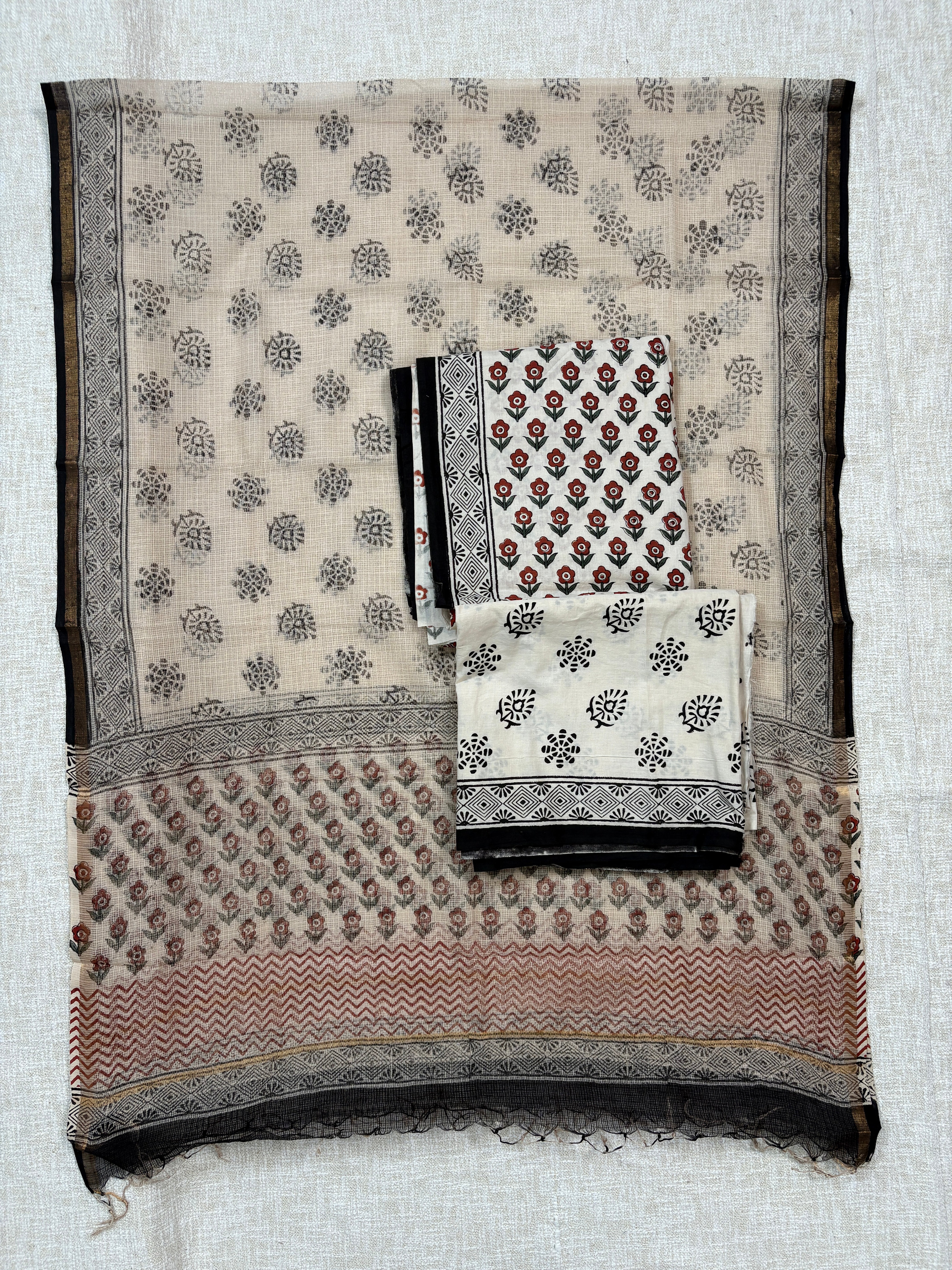 Cotton Handblock Office Wear Suit fabric with Kota Doria Dupatta