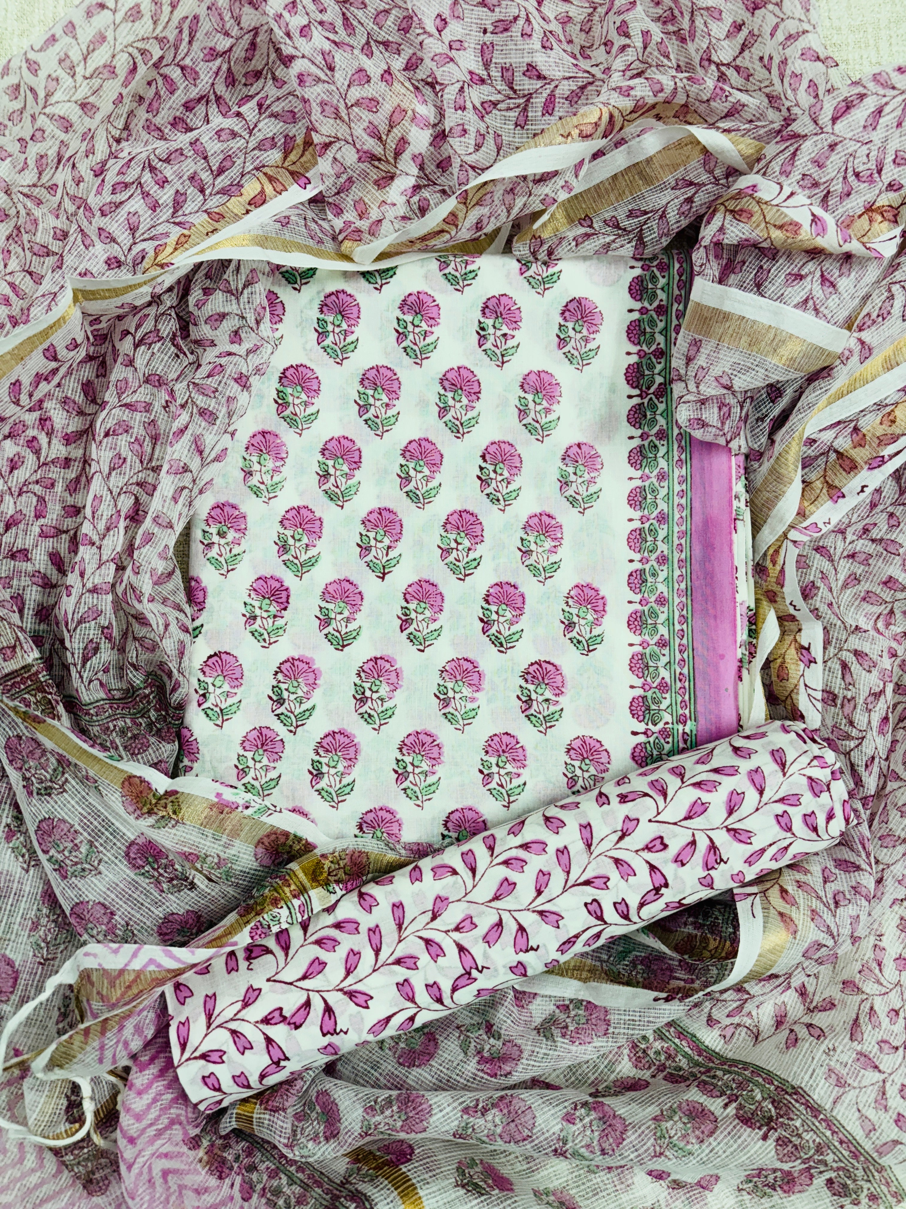 Cotton Handblock Office Wear Suit fabric with Kota Doria Dupatta