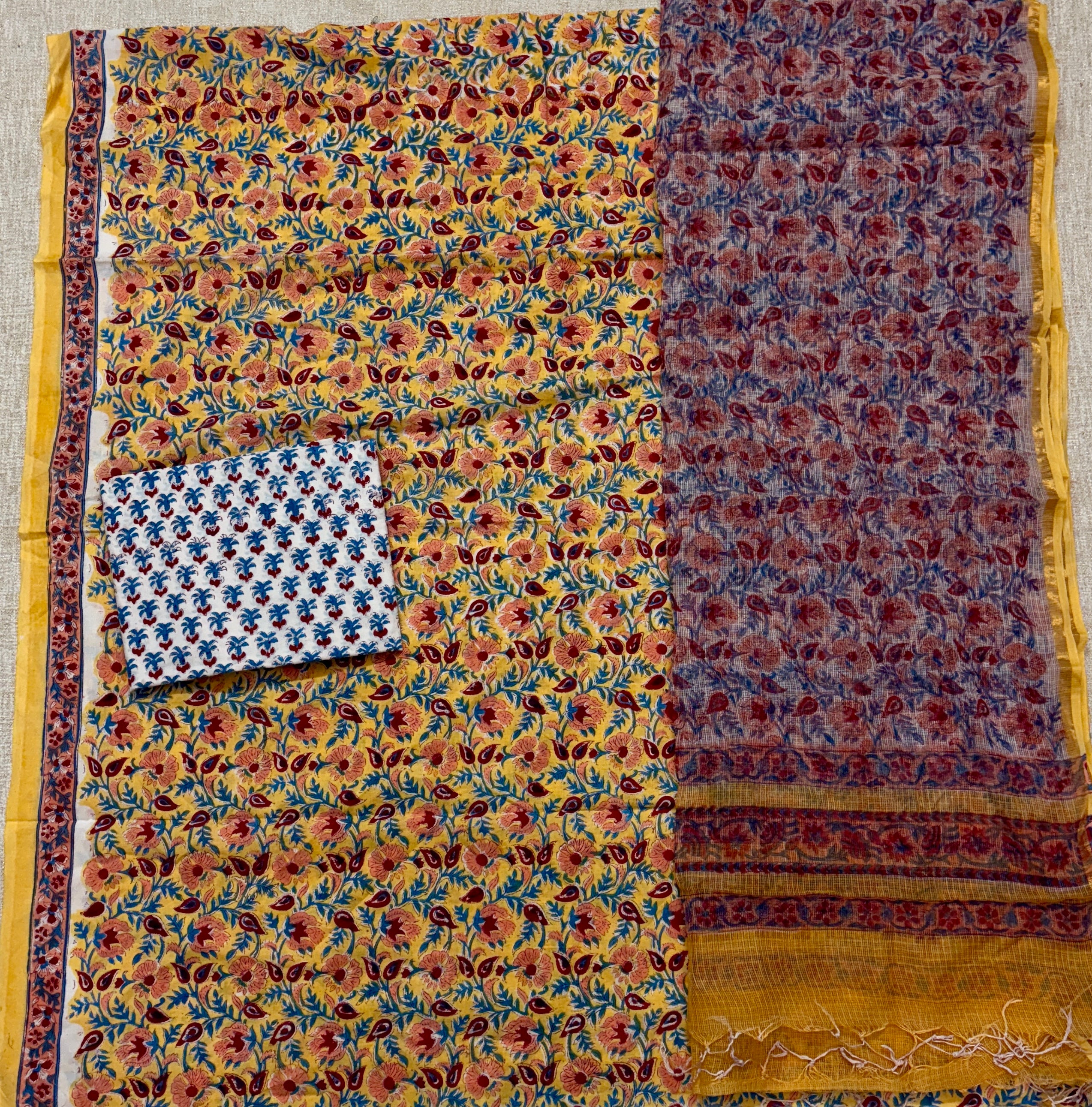 Cotton Handblock Office Wear Suit fabric with Kota Doria Dupatta (Code : 978)