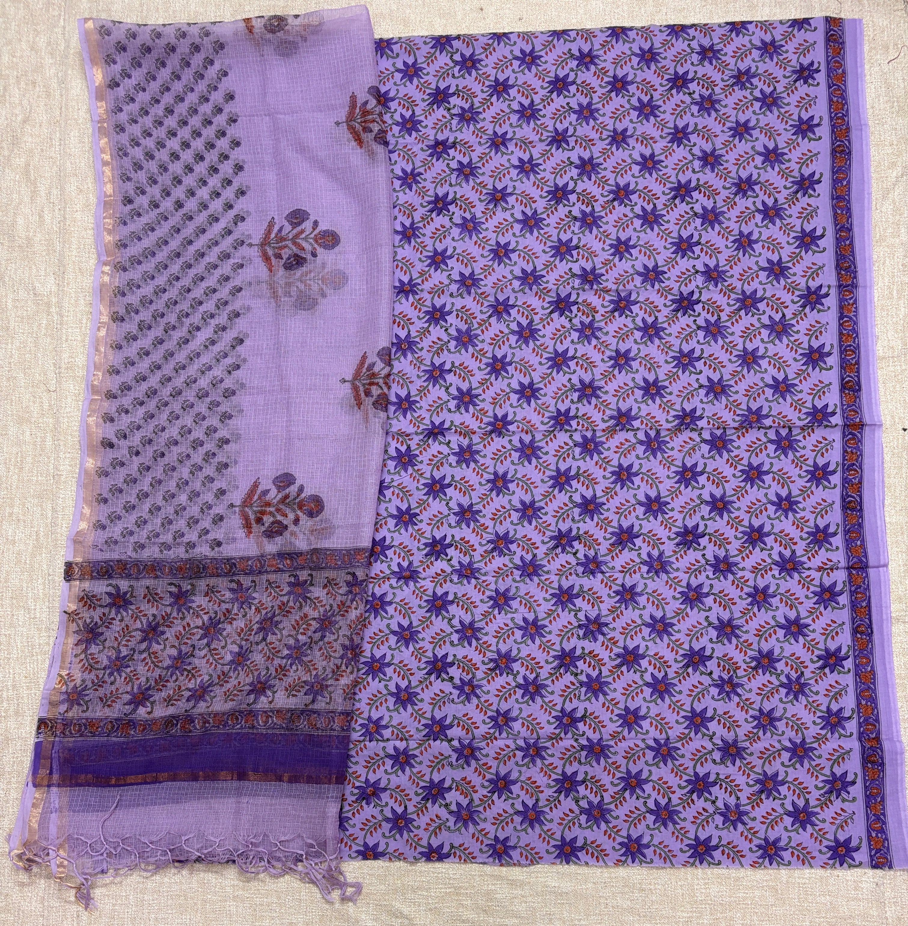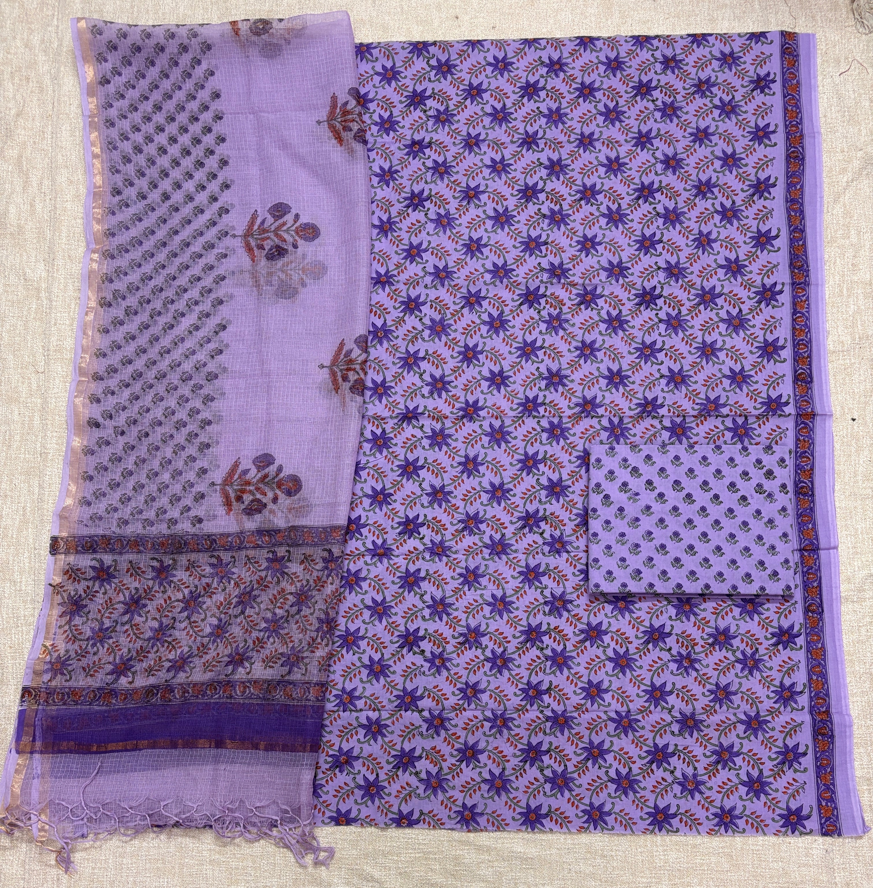 Cotton Handblock Office Wear Suit fabric with Kota Doria Dupatta
