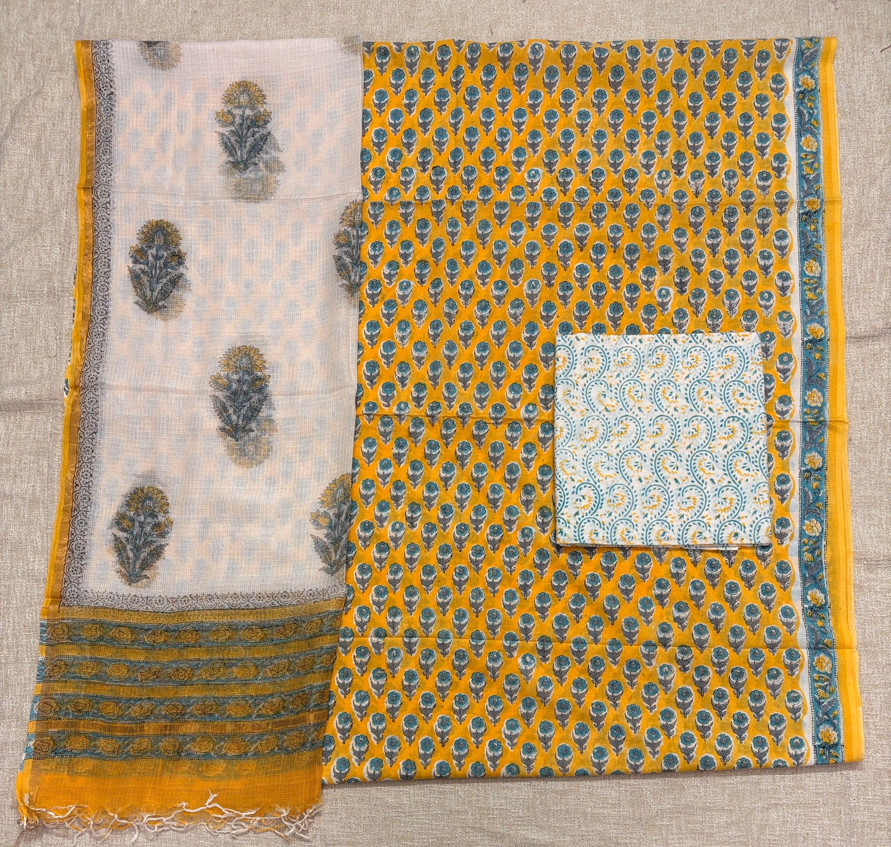 Cotton Handblock Office Wear Suit fabric with Kota Doria Dupatta