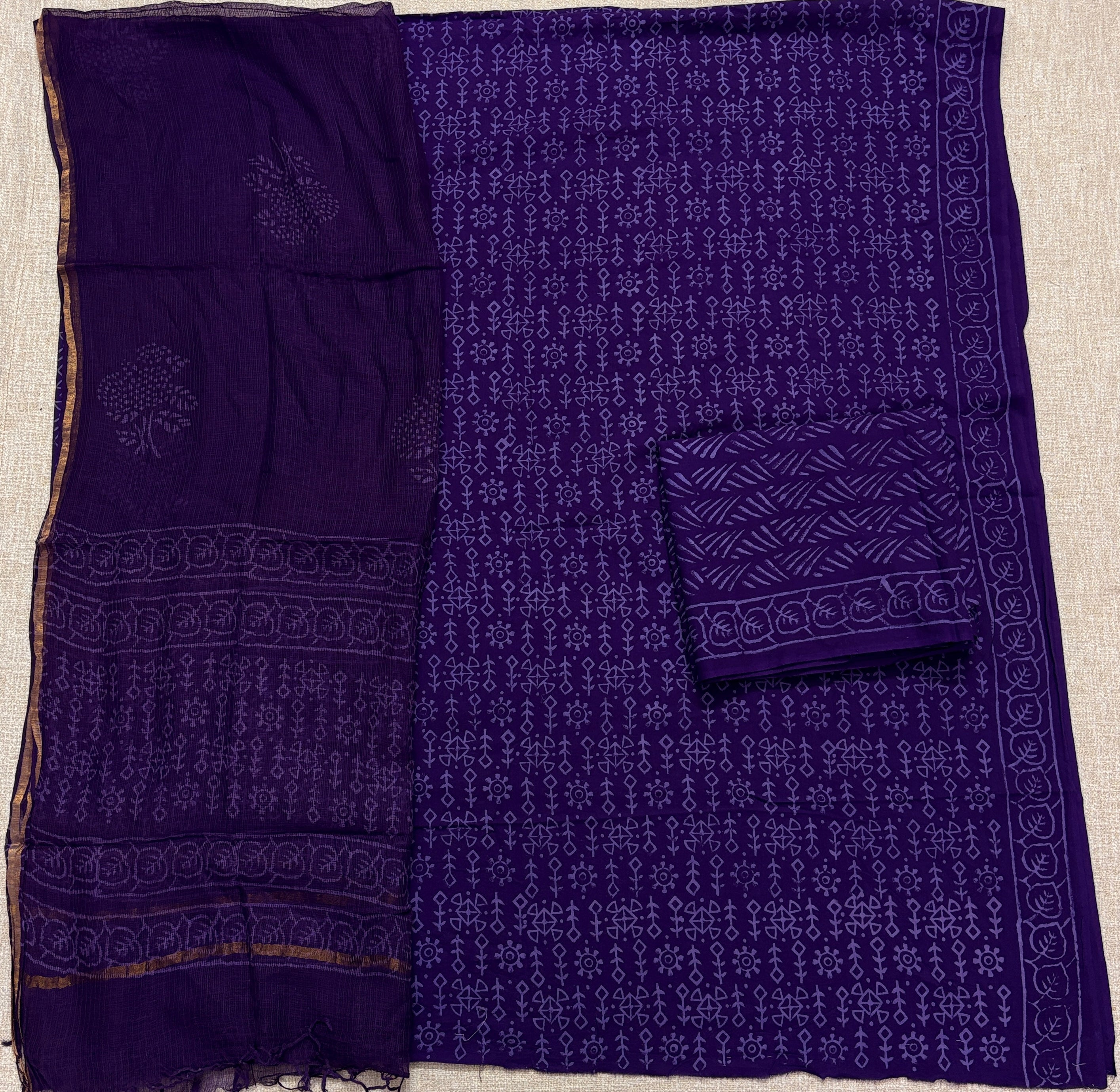 Cotton Handblock Office Wear Suit fabric with Kota Doria Dupatta (Code : 980)