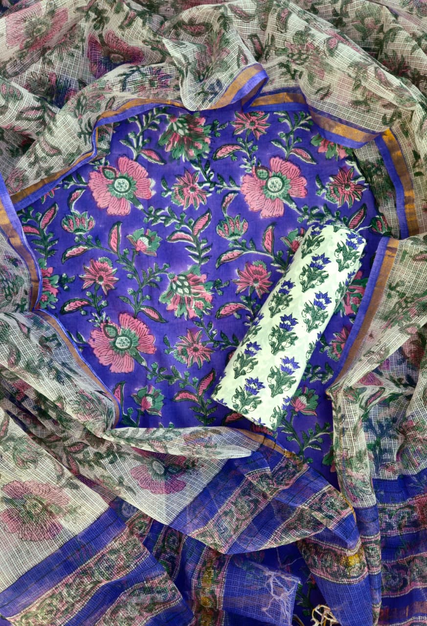 Cotton Handblock Office Wear Suit fabric with Kota Doria Dupatta (Code : 981)