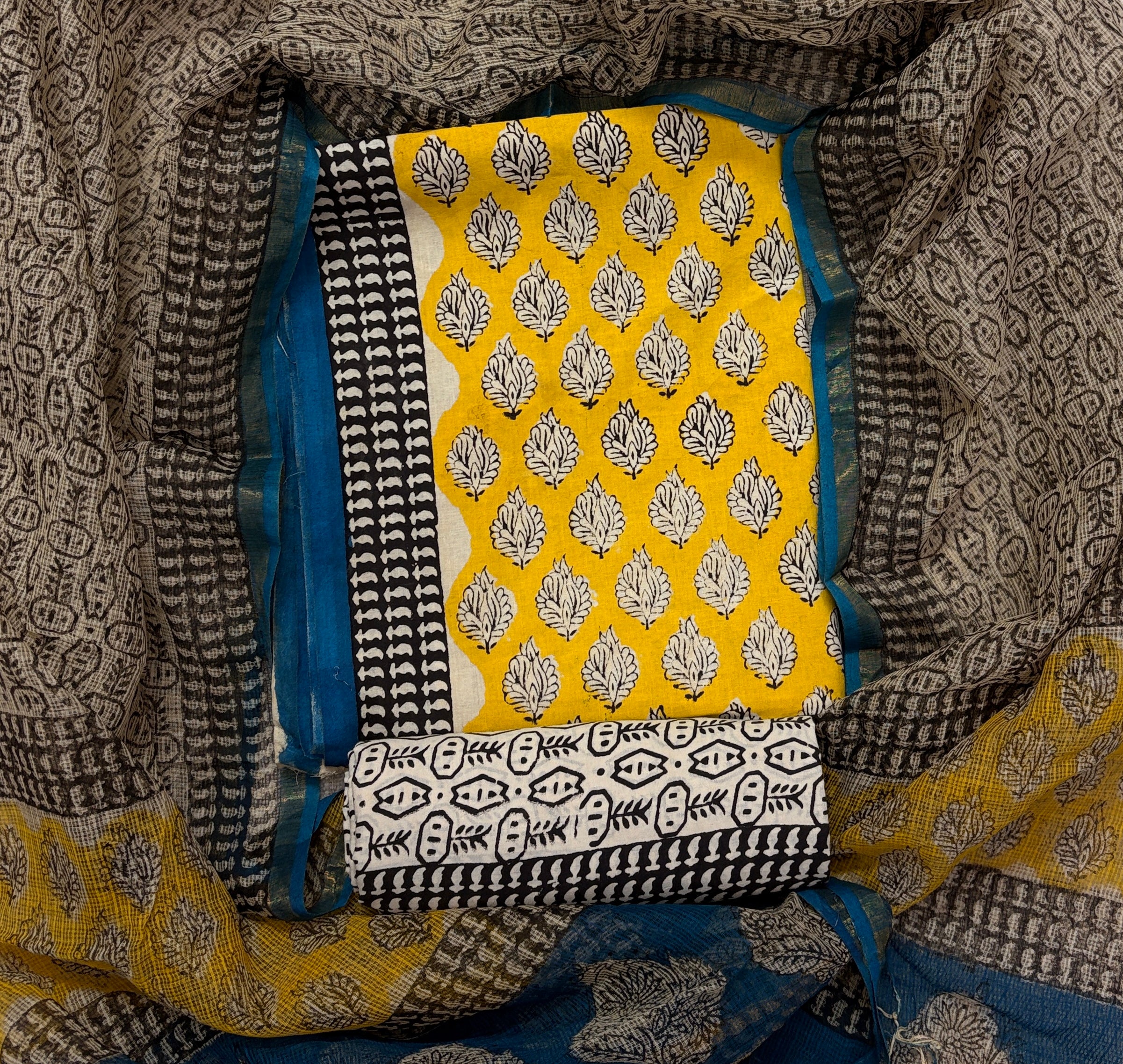 Cotton Handblock Office Wear Suit fabric with Kota Doria Dupatta (Code : 984)