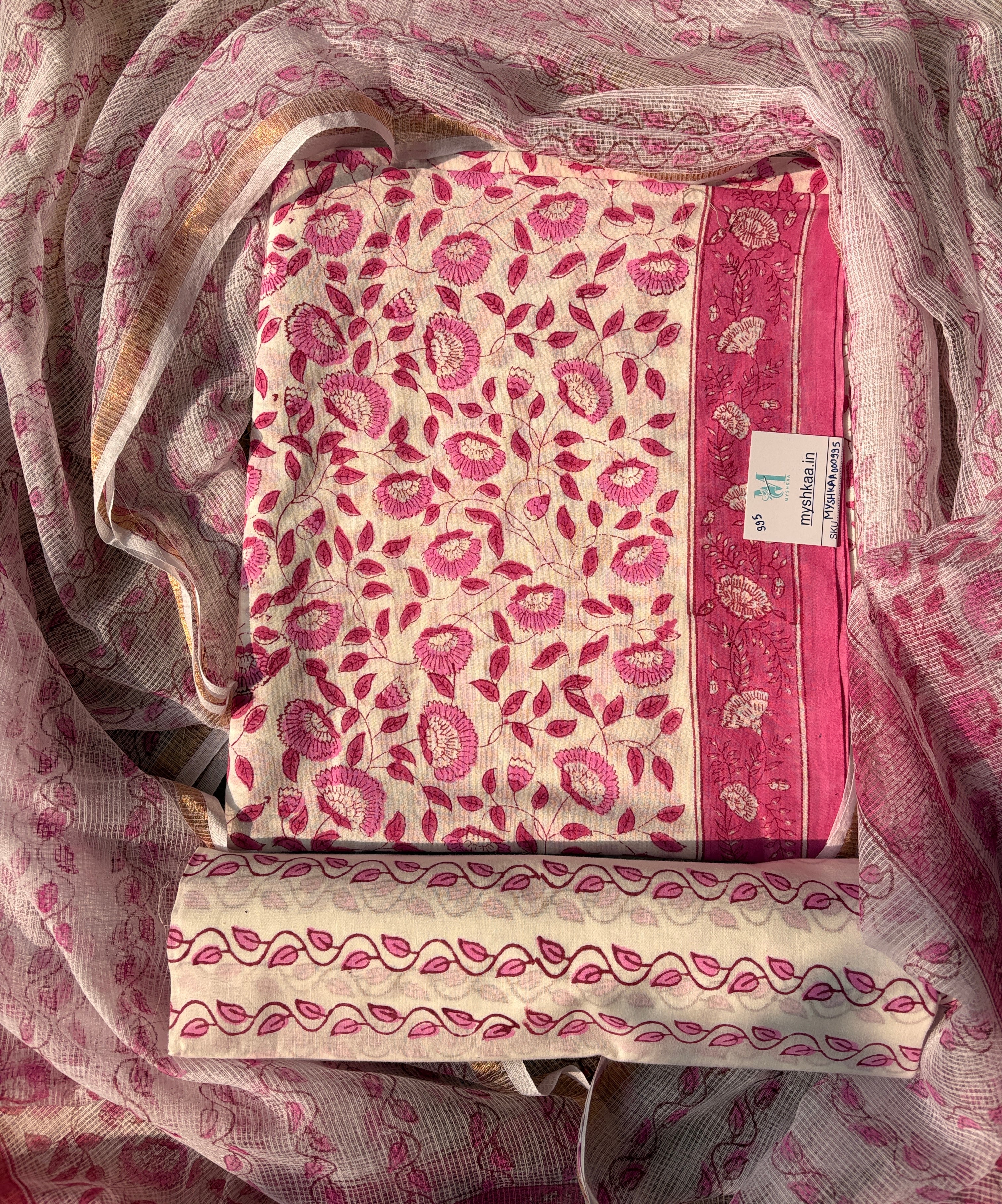 Cotton Handblock Office Wear Suit fabric with Kota Doria Dupatta (Code : 995)