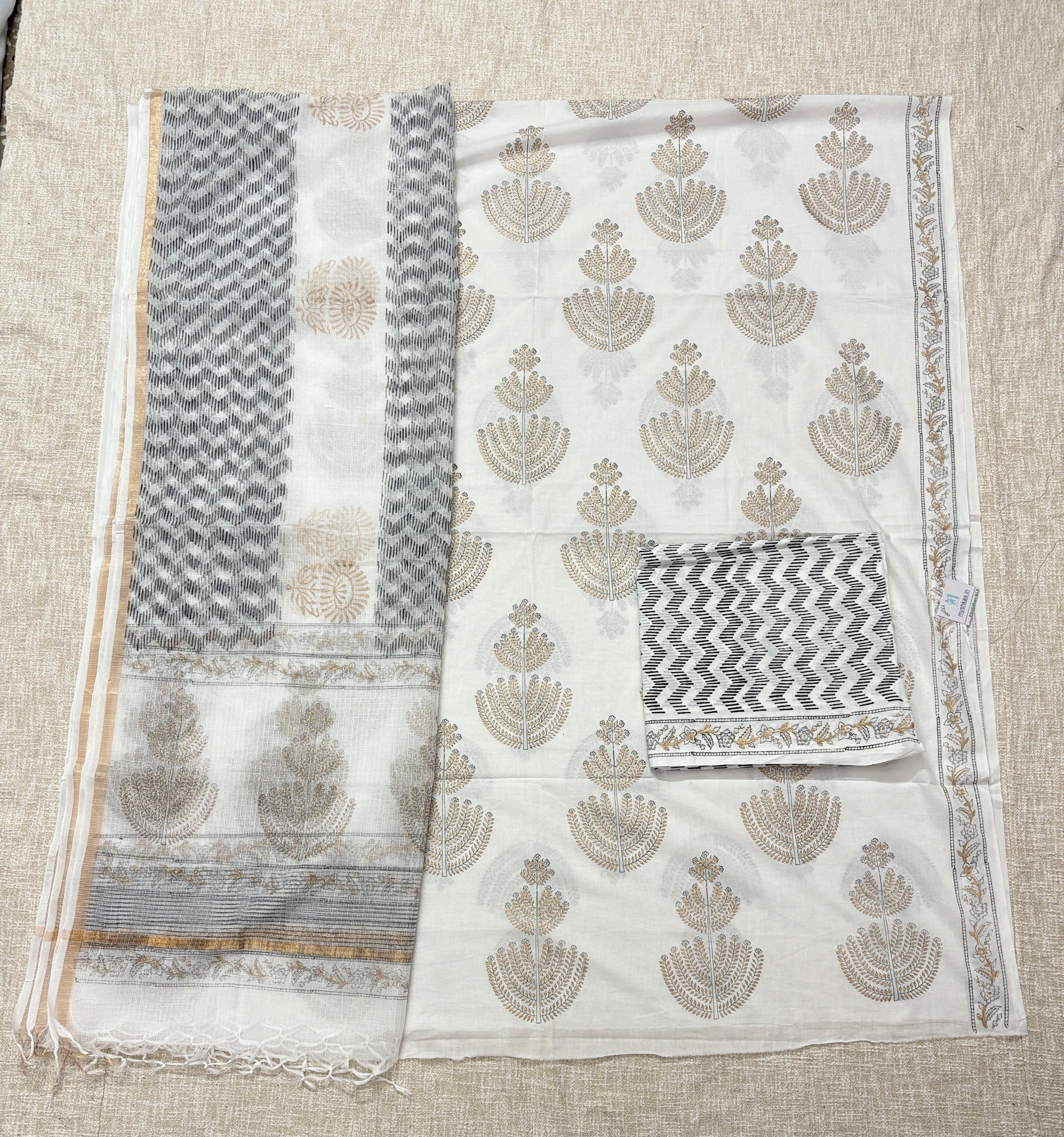 Cotton Handblock Office Wear Suit fabric with Kota Doria Dupatta