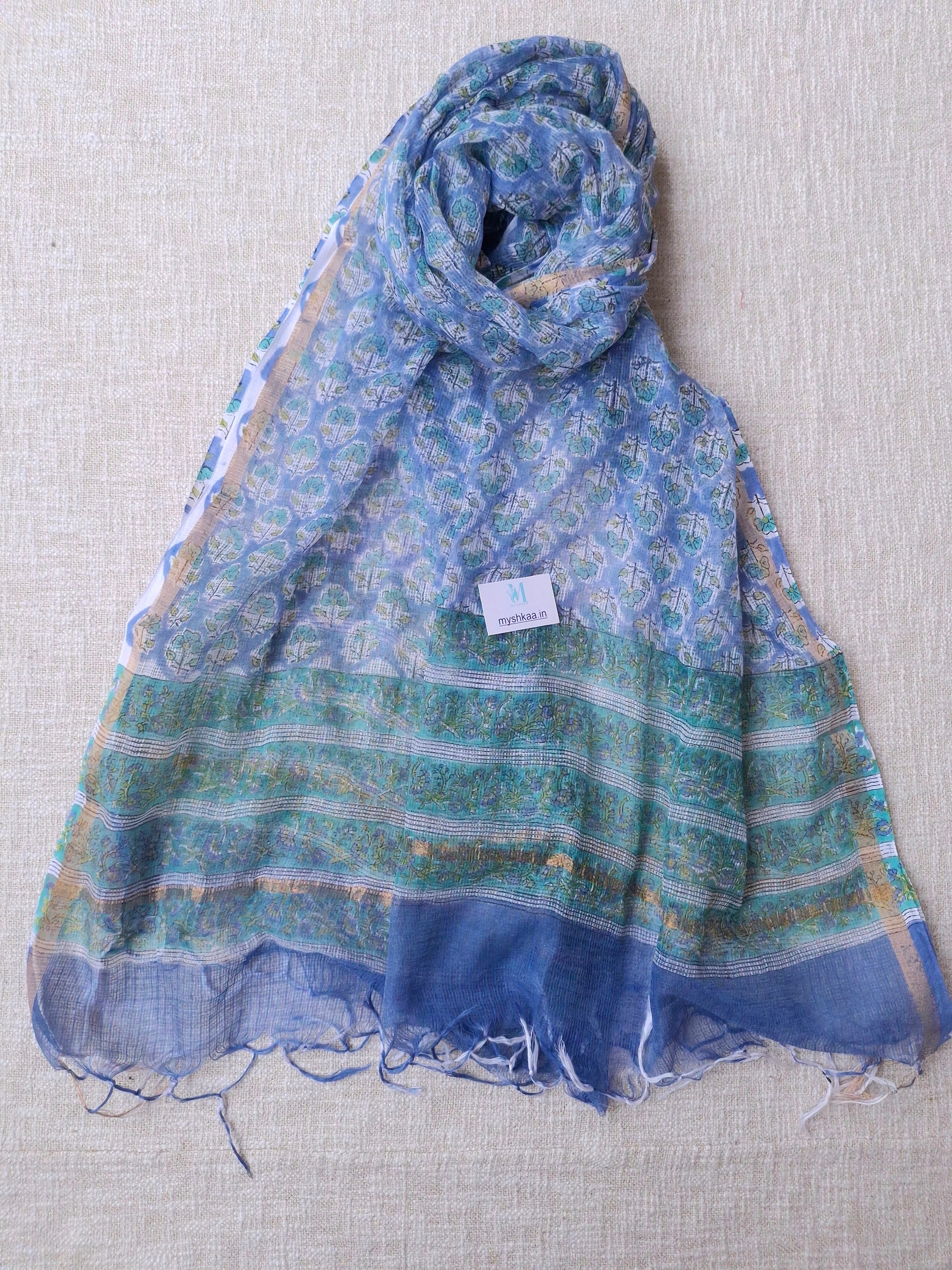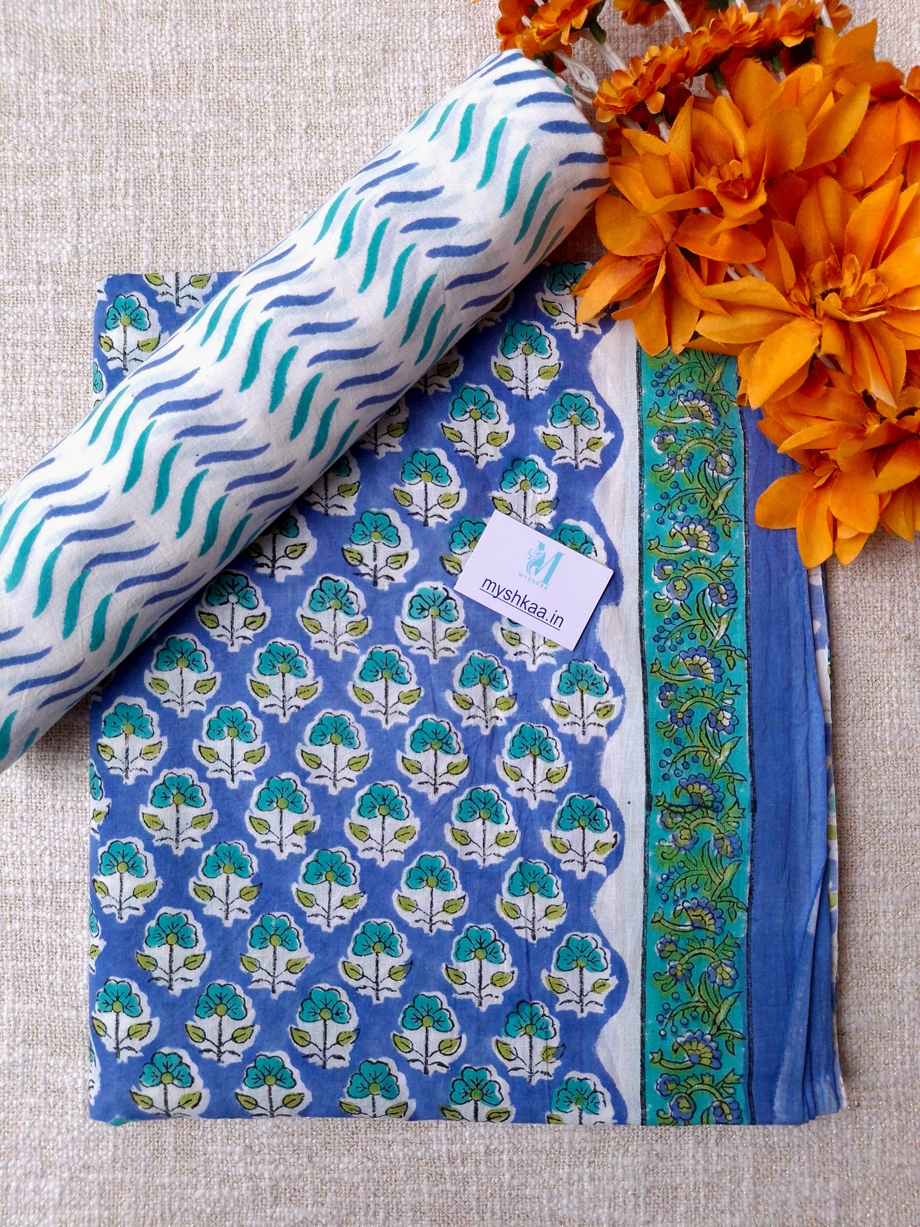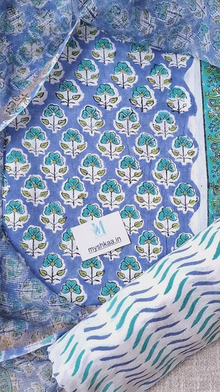 Blue Cotton Handblock Office Wear Suit fabric with Kota Doria Dupatta