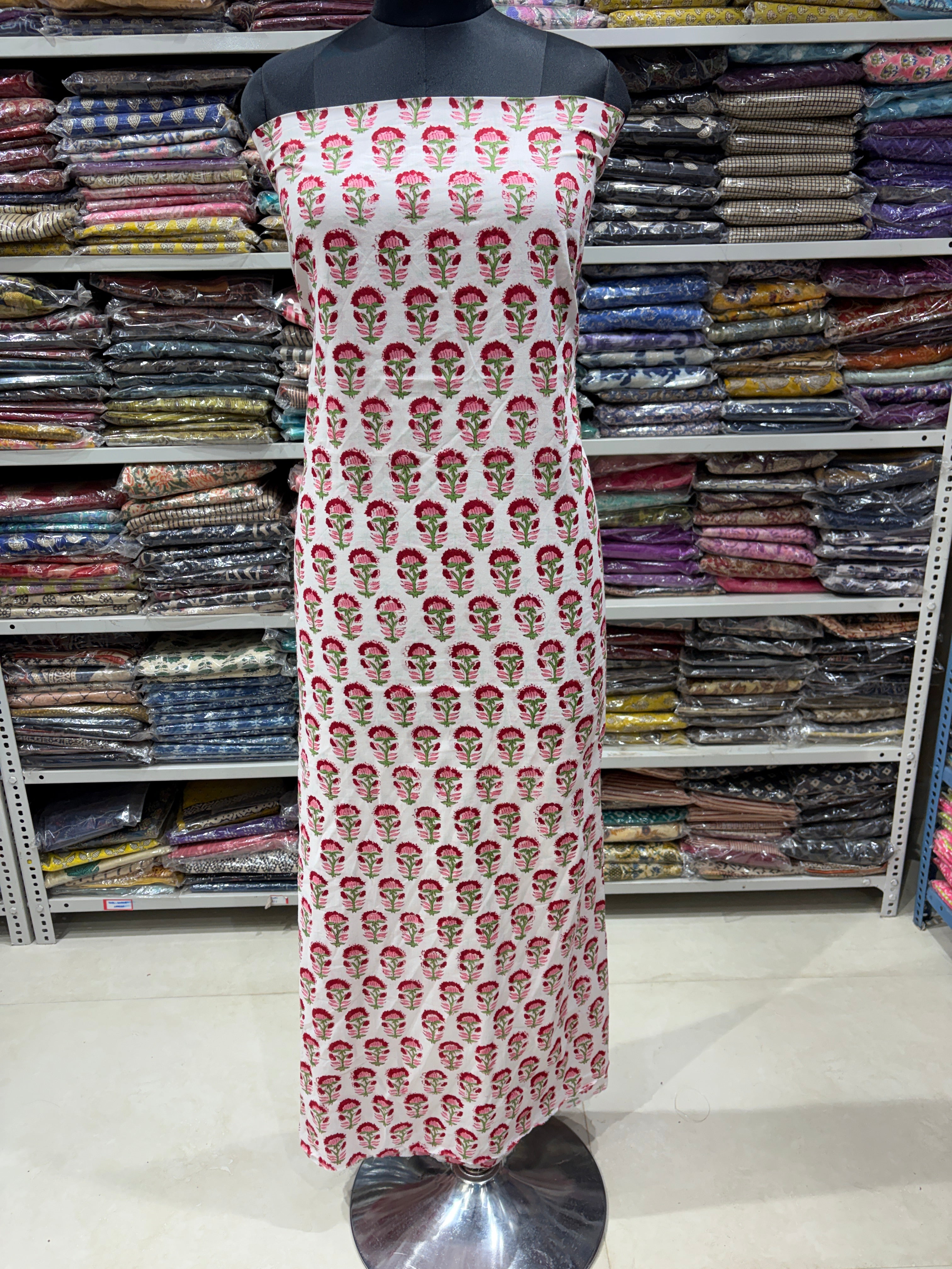 Sanganeri Print Cotton Handblock Office Wear Suit fabric with Sanganeri Kota Doria Dupatta