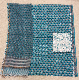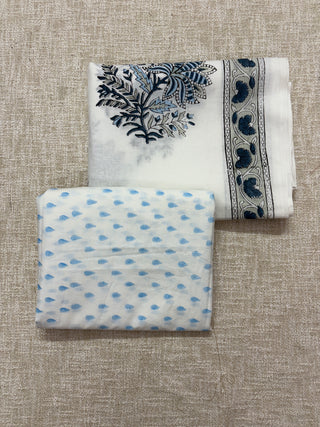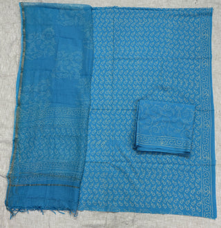 Indigo color Handblock Office Wear Suit fabric with Kota doria Dupatta