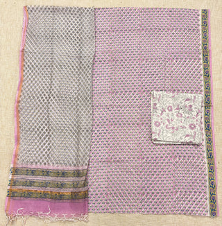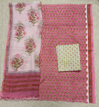 Pink Cotton Handblock Office Wear Suit fabric with Kota Doria Dupatta