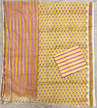 Cotton Handblock Office Wear Suit fabric with Kota Doria Dupatta