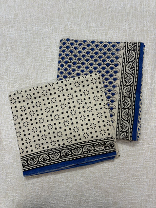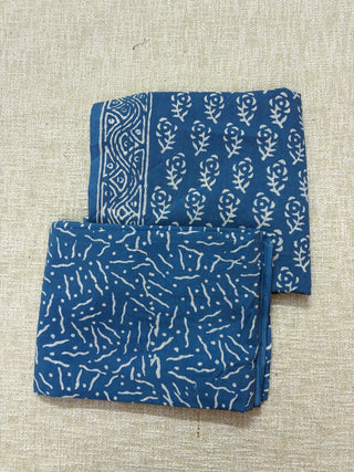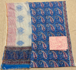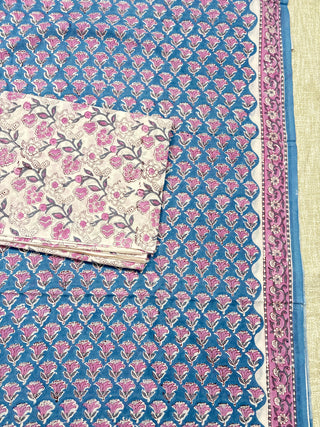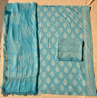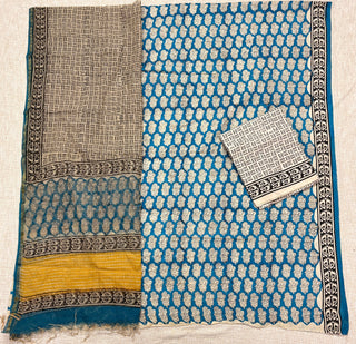 Blue Cotton Handblock Office Wear Suit fabric with Kota Doria Dupatta
