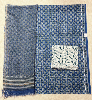 Cotton Dabu Indigo Handblock Office Wear Suit fabric with Kota doria Dupatta