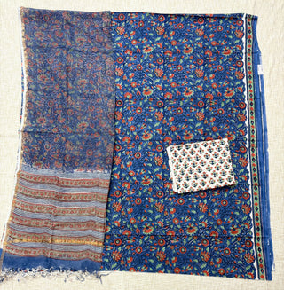 Cotton Kalamkari Handblock Office Wear Suit fabric with Kota doria Dupatta