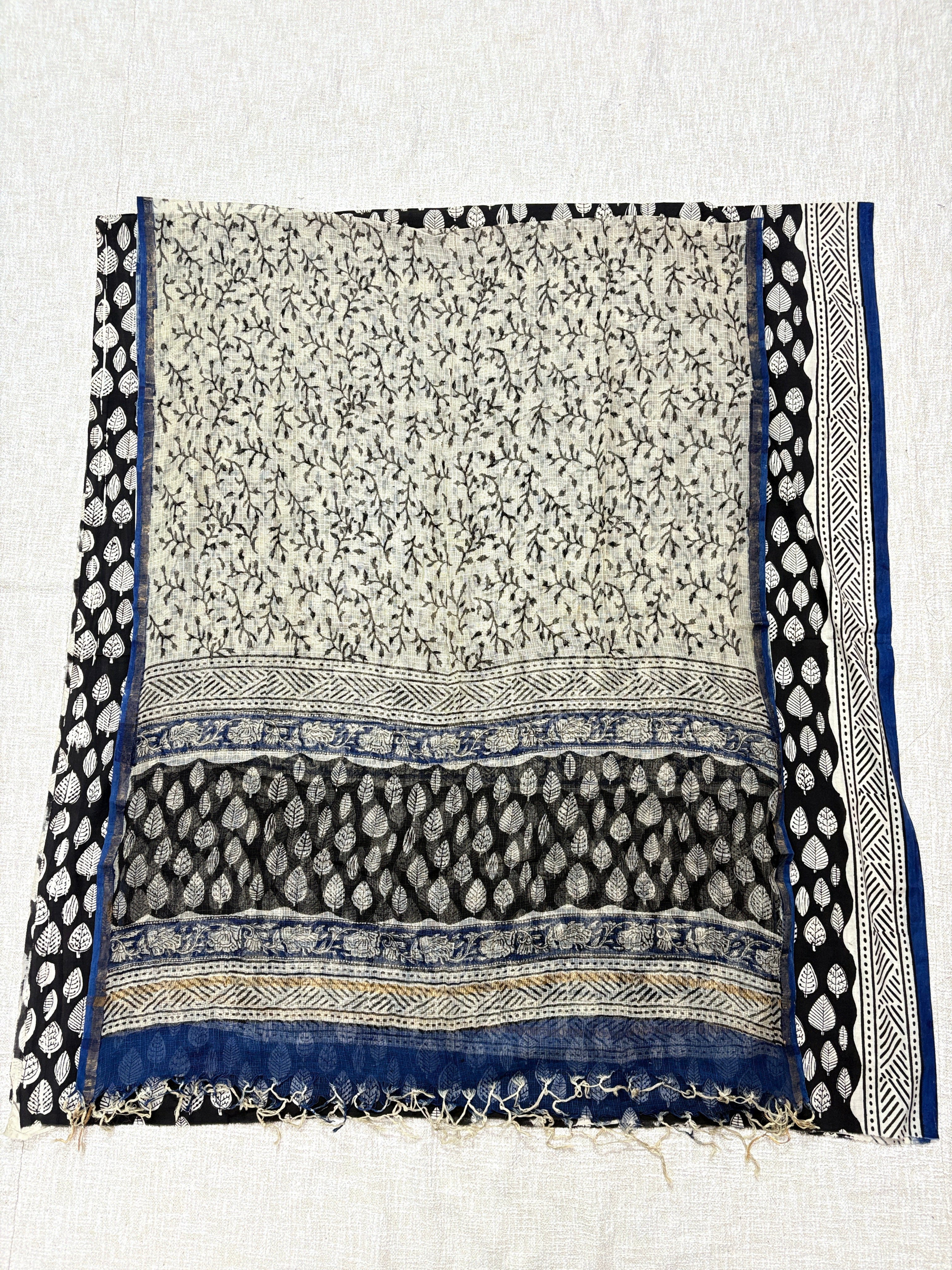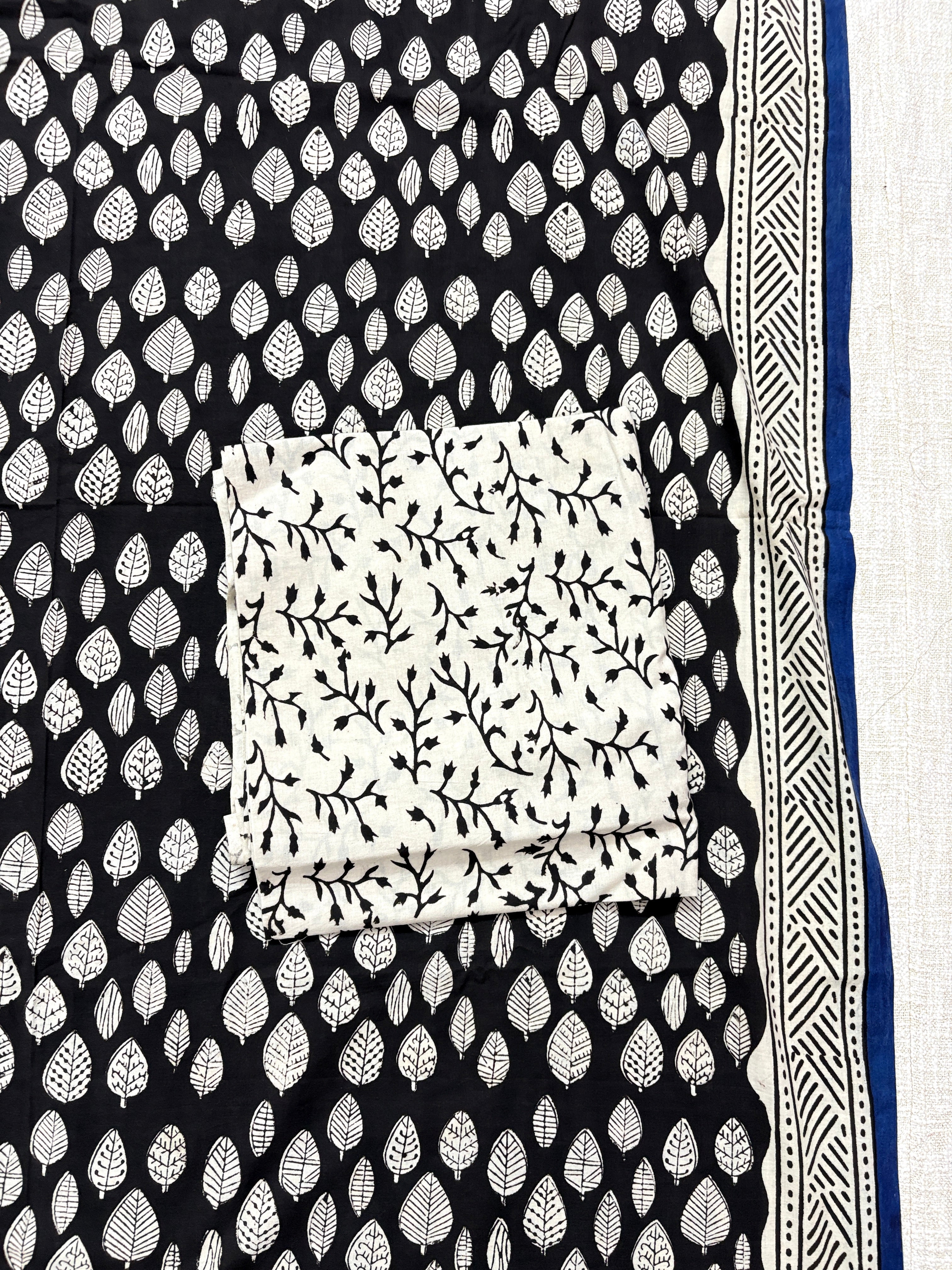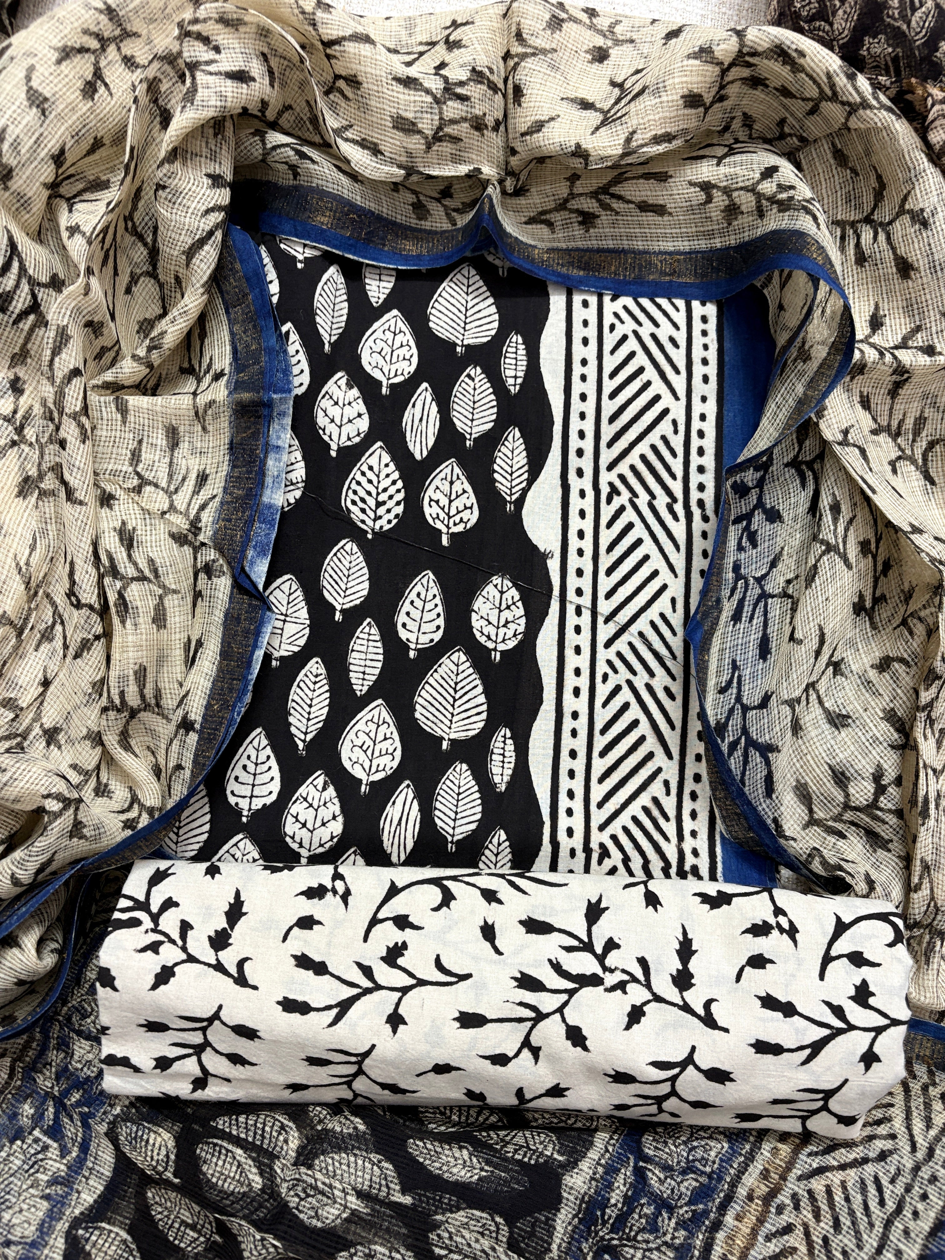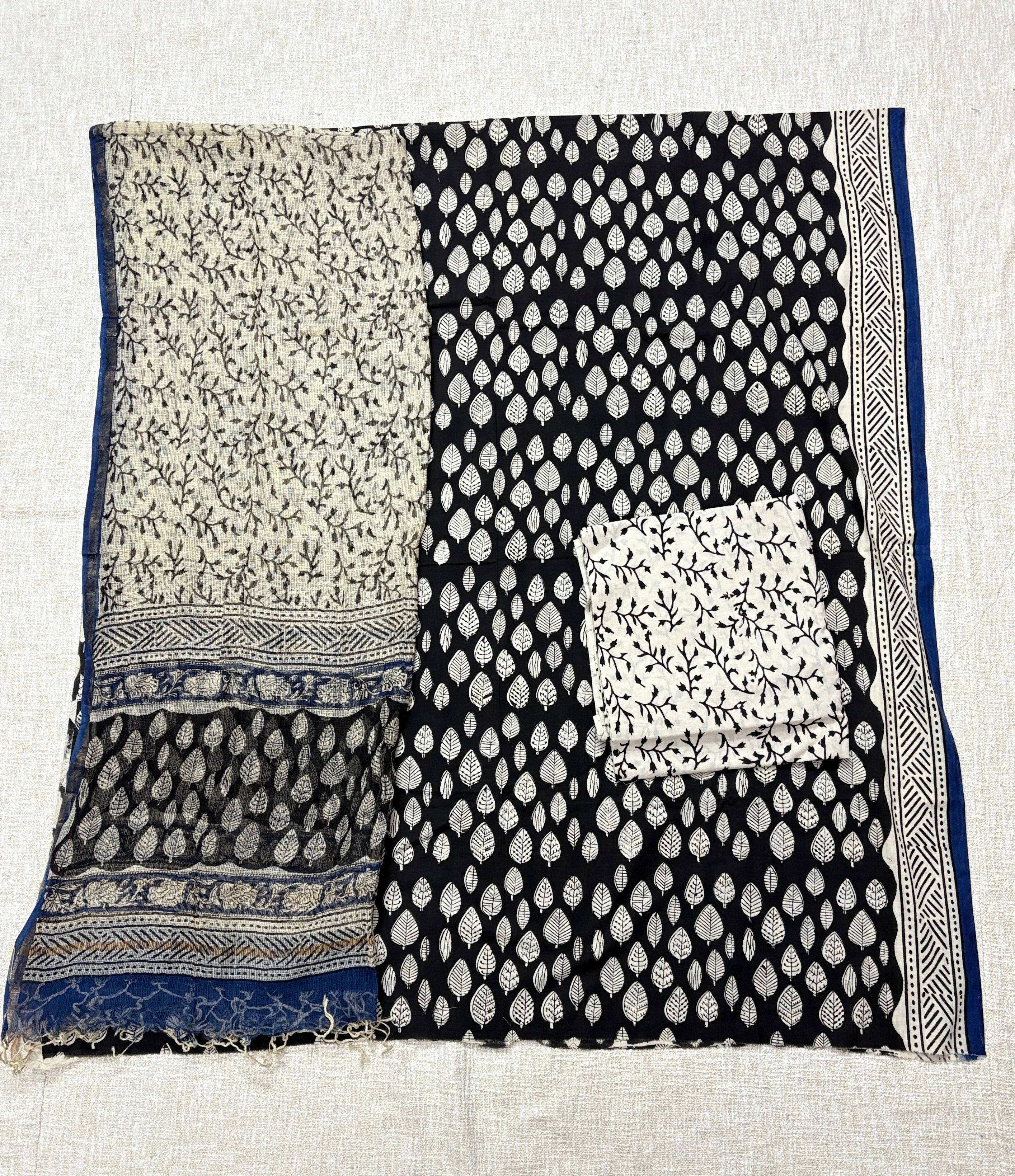 - Black color Handblock Office Wear Suit fabric with Kota doria Dupatta