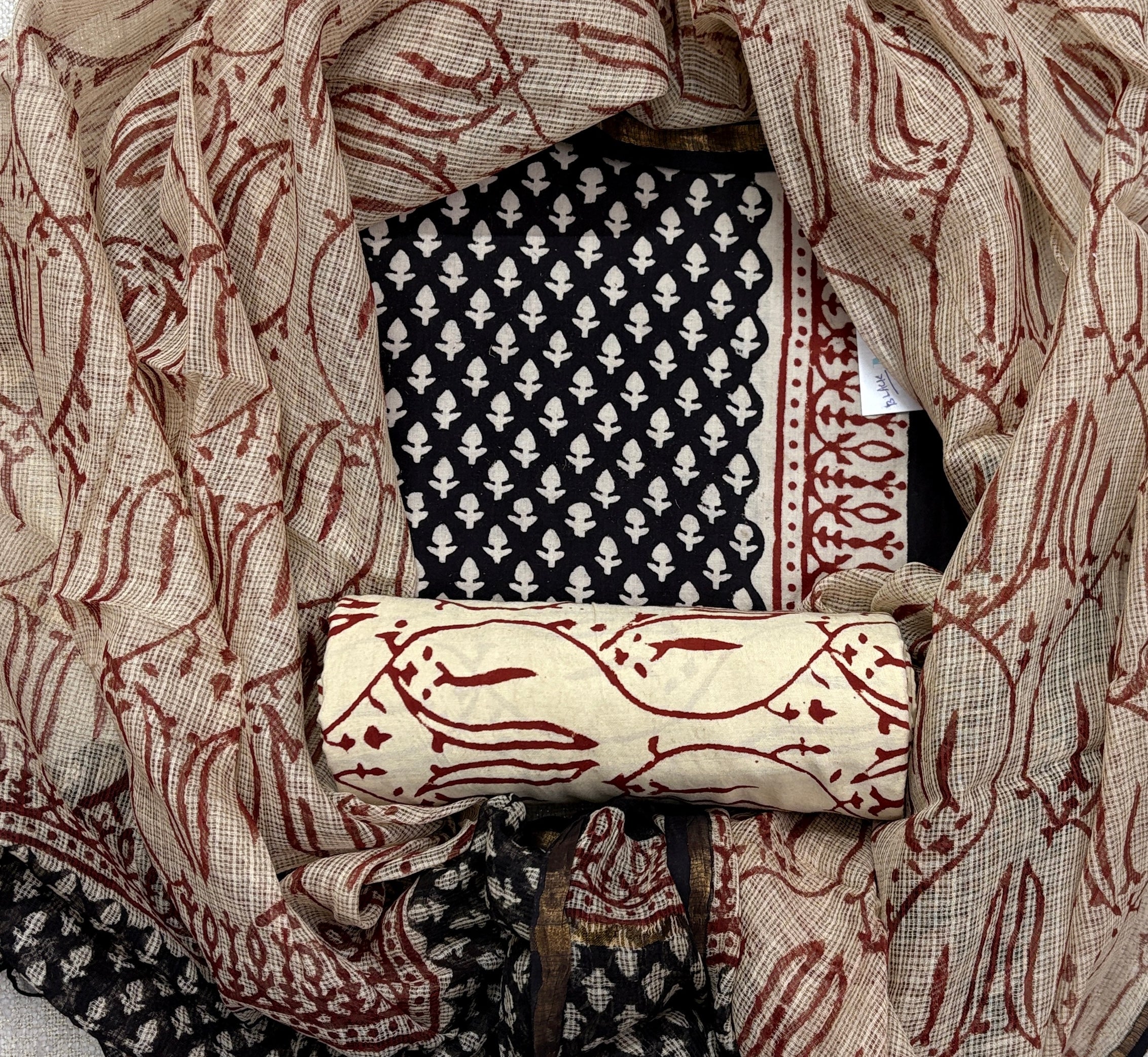 • Black color Handblock Office Wear Suit fabric with Kota doria Dupatta