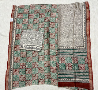 Cotton Ajrakh Handblock Office Wear Suit fabric with Kota doria Dupatta
