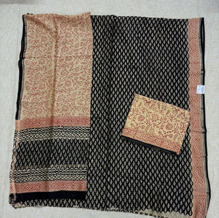 Black color Handblock Office Wear Suit fabric with Kota doria Dupatta