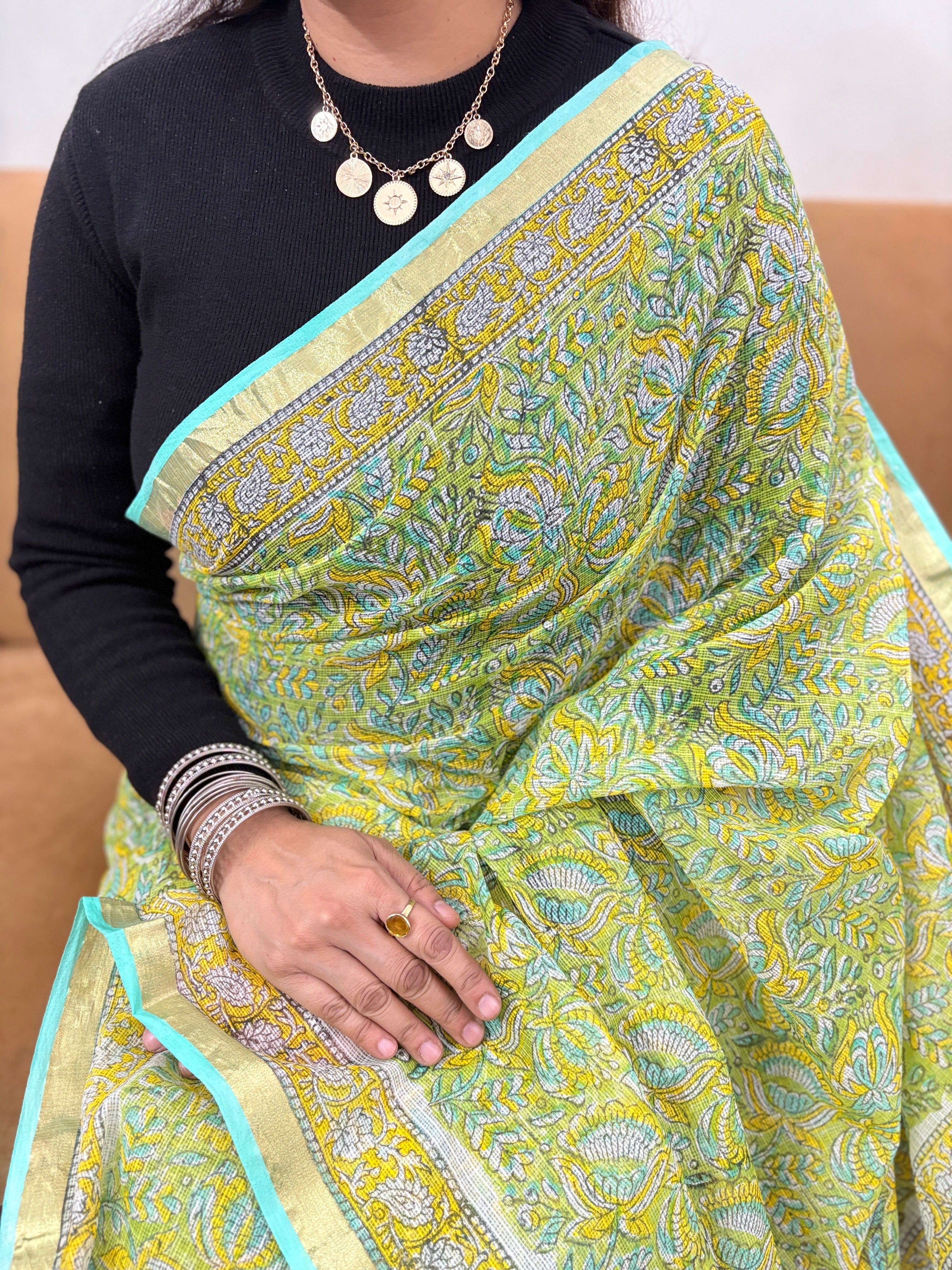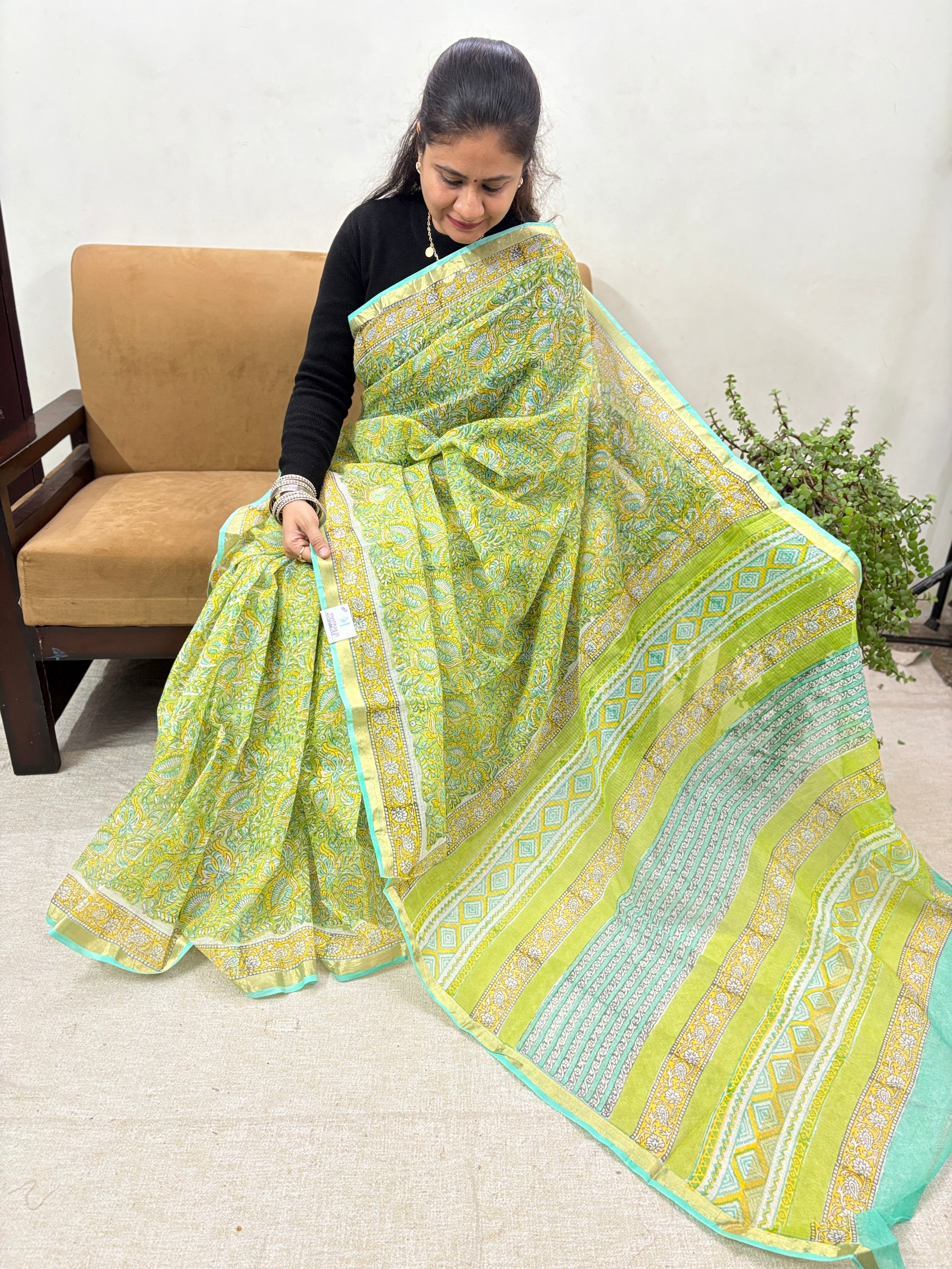 Office Wear Kota Doria Cotton Saree with Unstitched blouse Piece