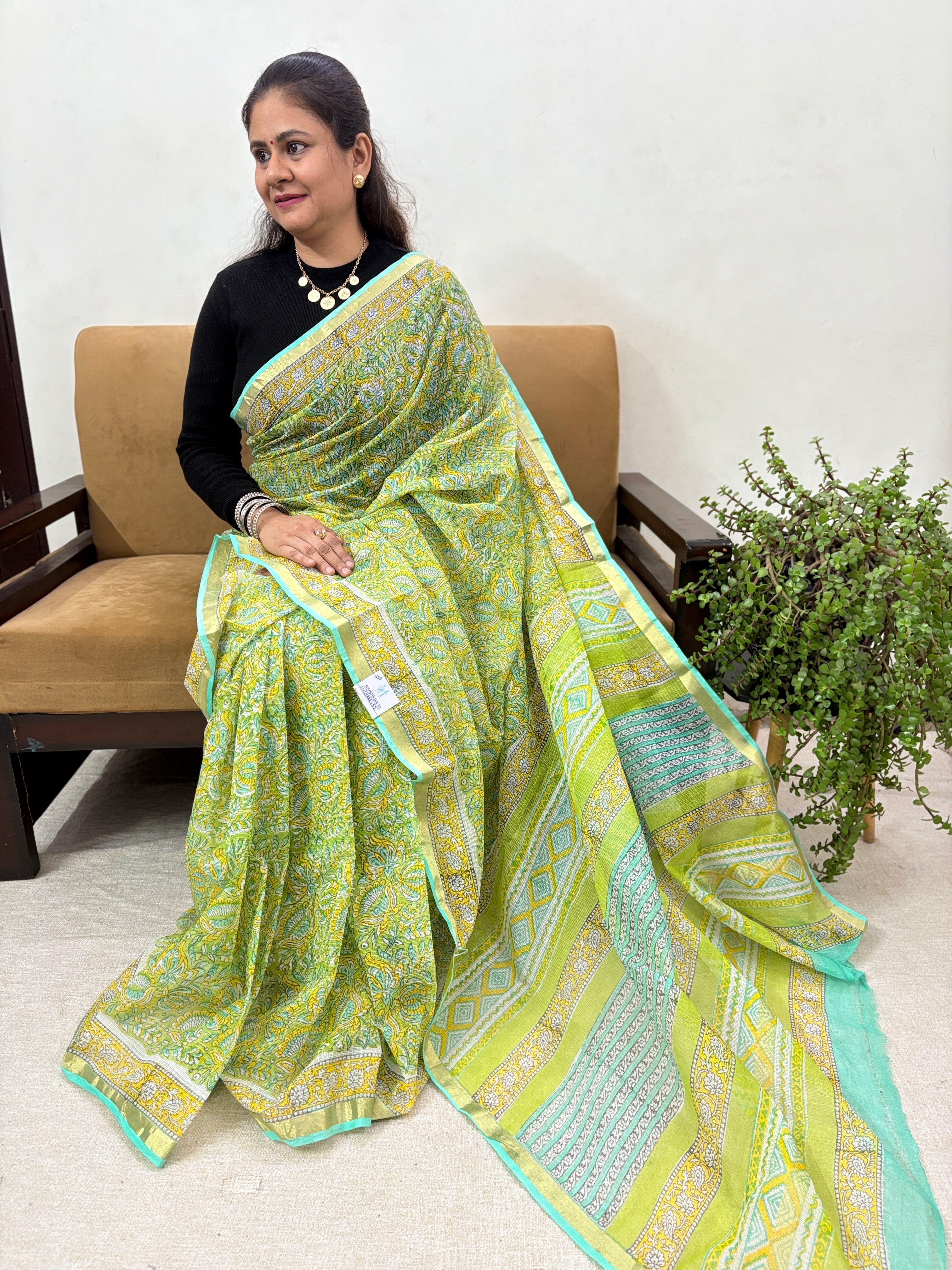 This Kota Doria Cotton Saree is suitable for all occasions like functions, weddings, office or any formal events.