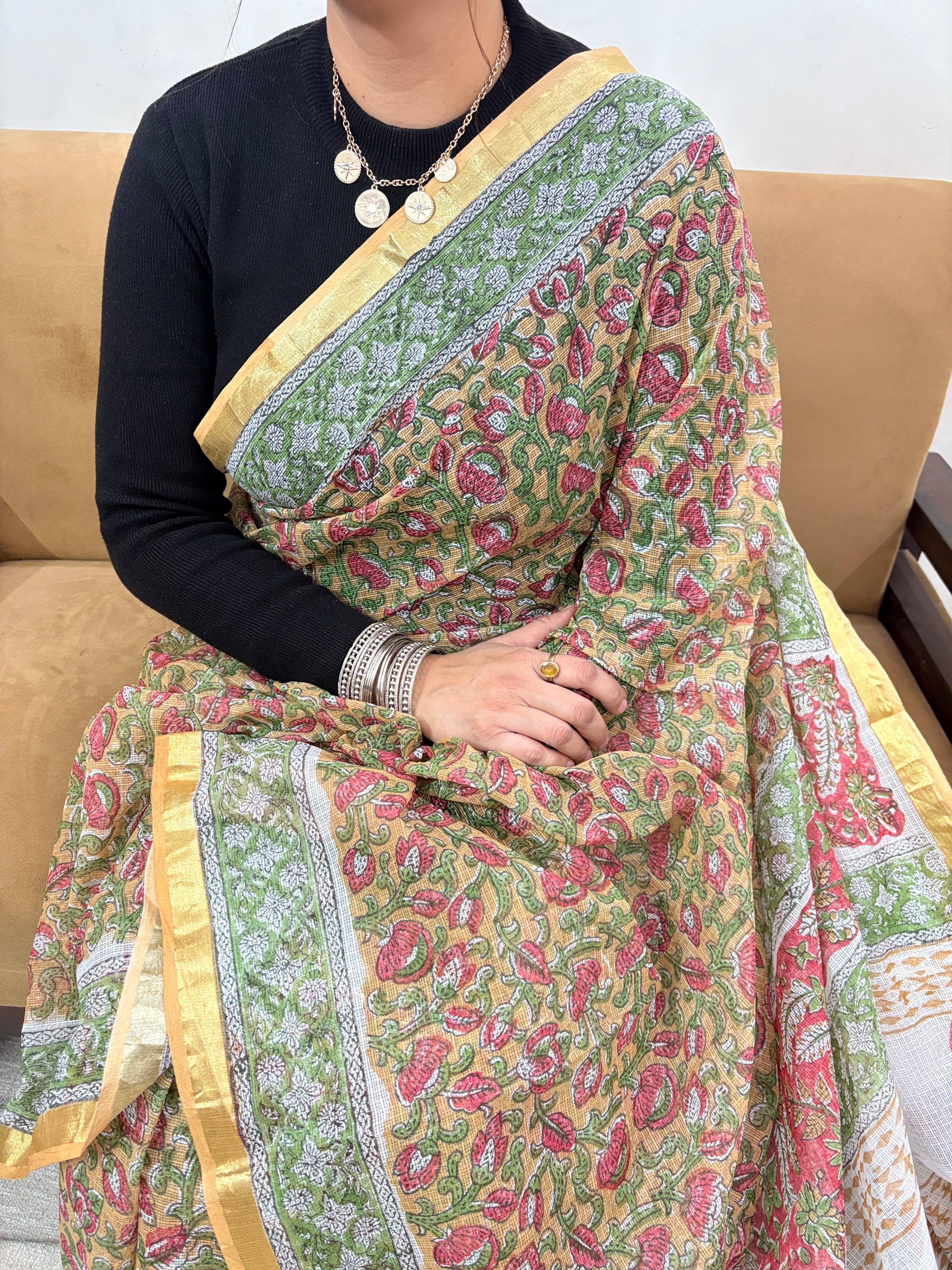 Office Wear Kota Doria Cotton Saree with Unstitched blouse Piece