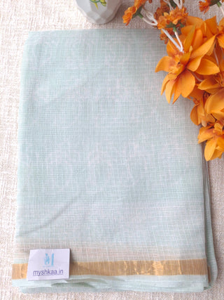 Light Green Hand Block Print Kota Doria Cotton Saree with Unstitched Blouse Piece