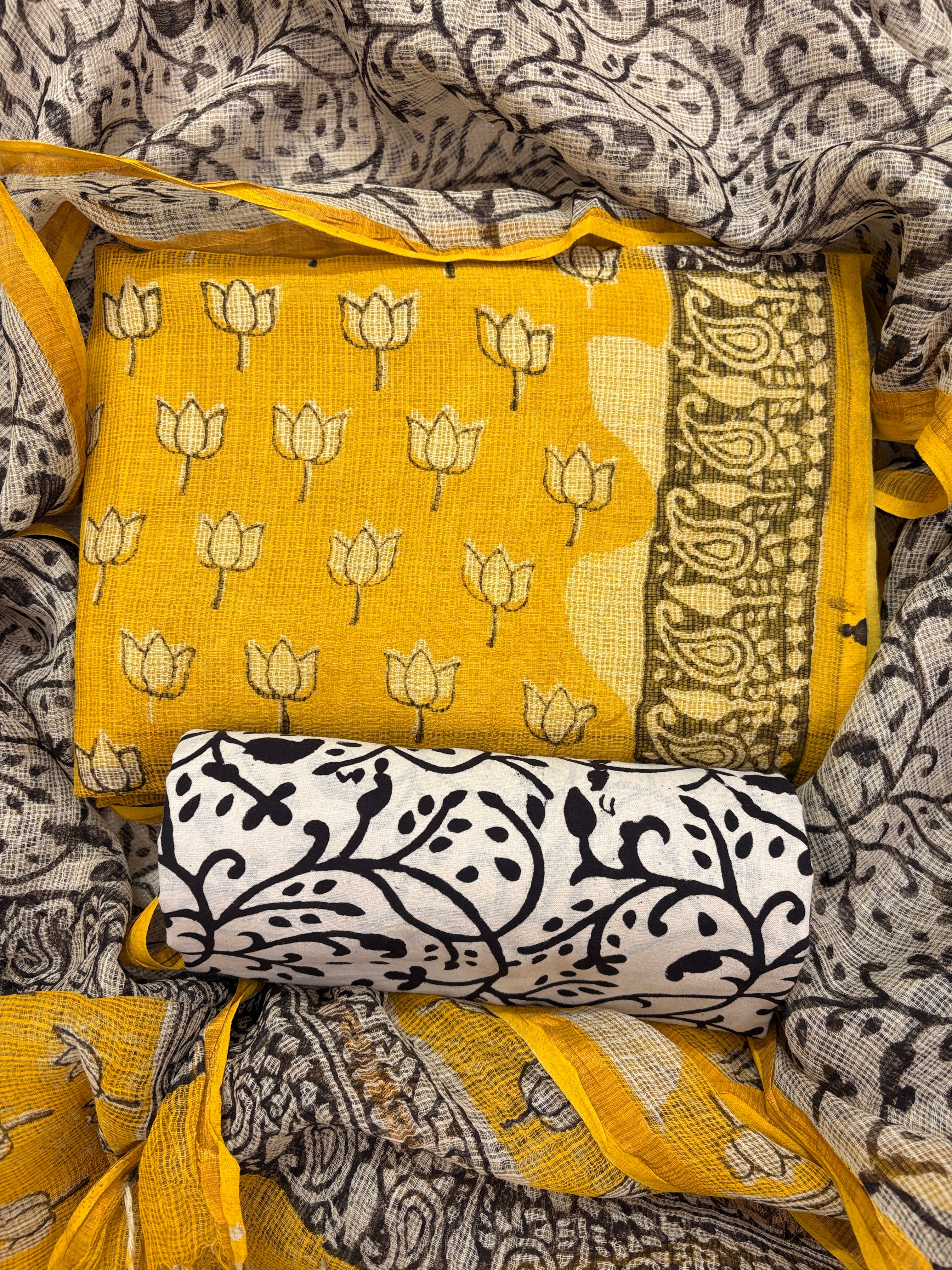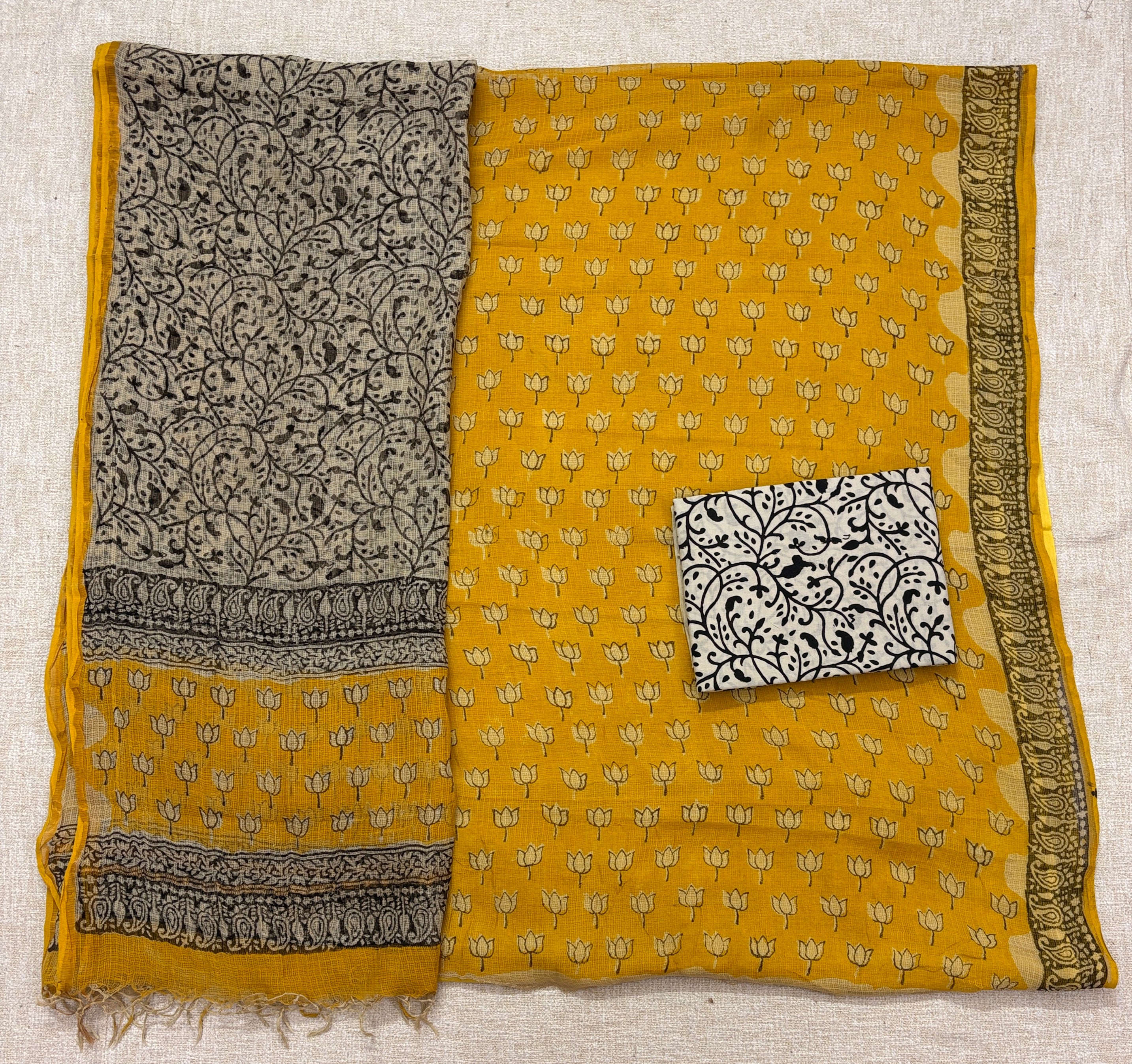 • Fabric Details : Top : Kota Doria with hand block work|| Bottom : cotton|| Dupatta : Kota doria dupatta with hand block work