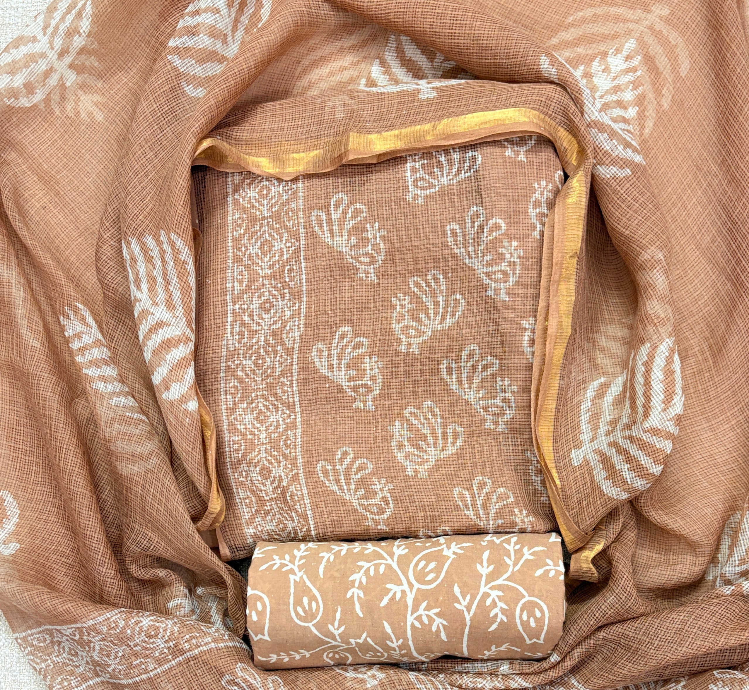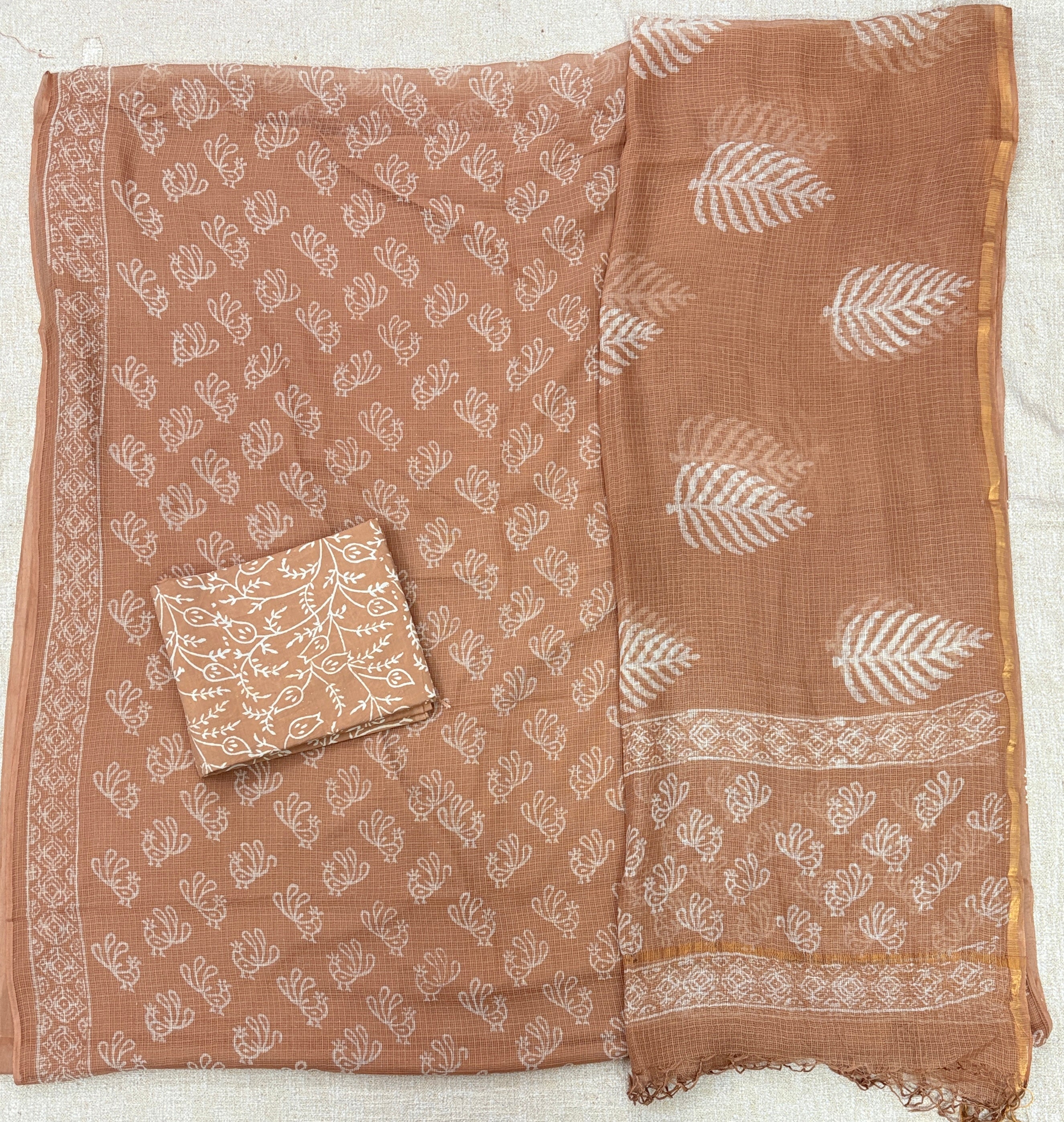 • Fabric Details : Top : Kota Doria with hand block work|| Bottom : cotton|| Dupatta : Kota doria dupatta with hand block work