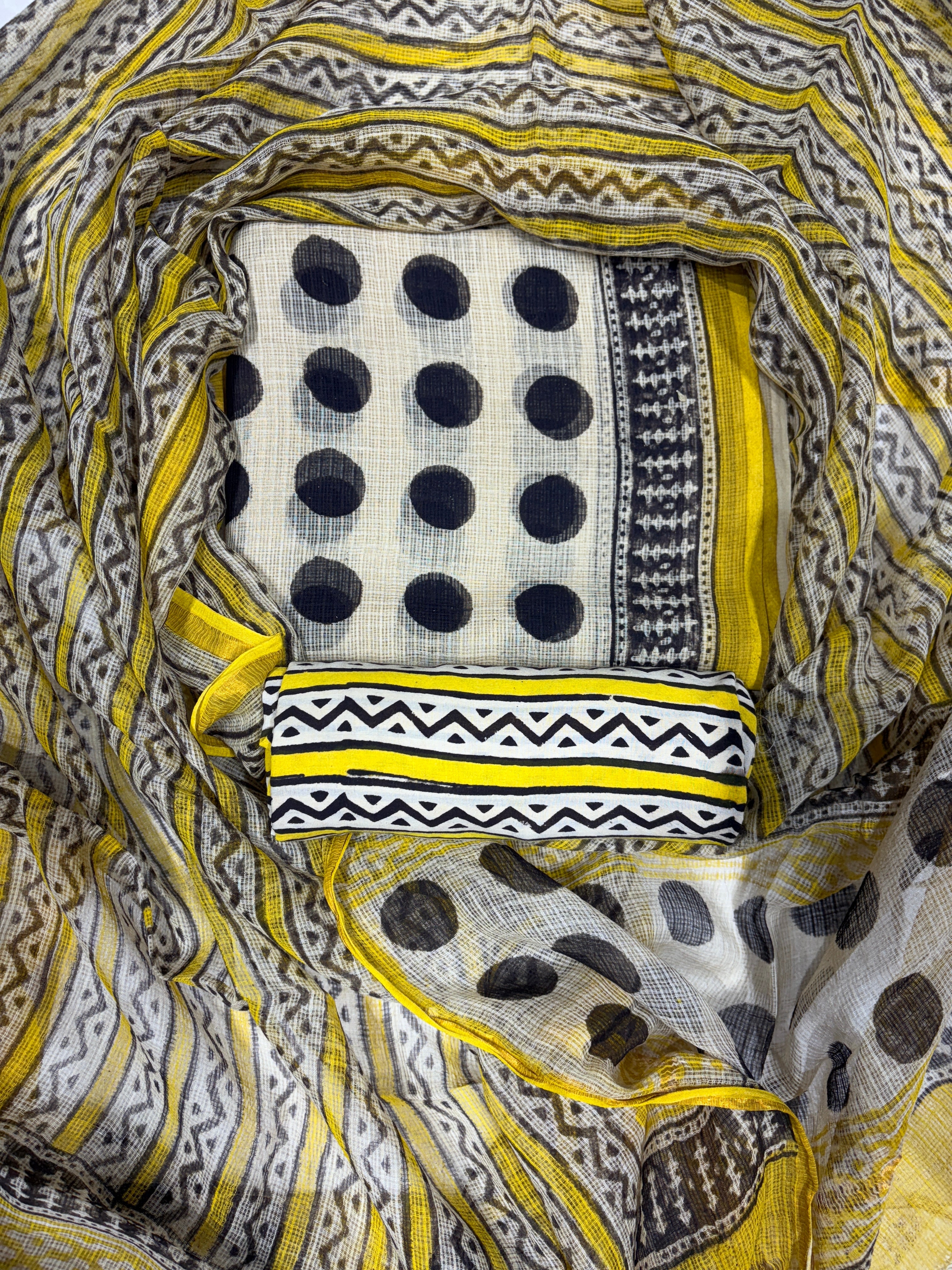 • Fabric Details : Top : Kota Doria with hand block work|| Bottom : cotton|| Dupatta : Kota doria dupatta with hand block work