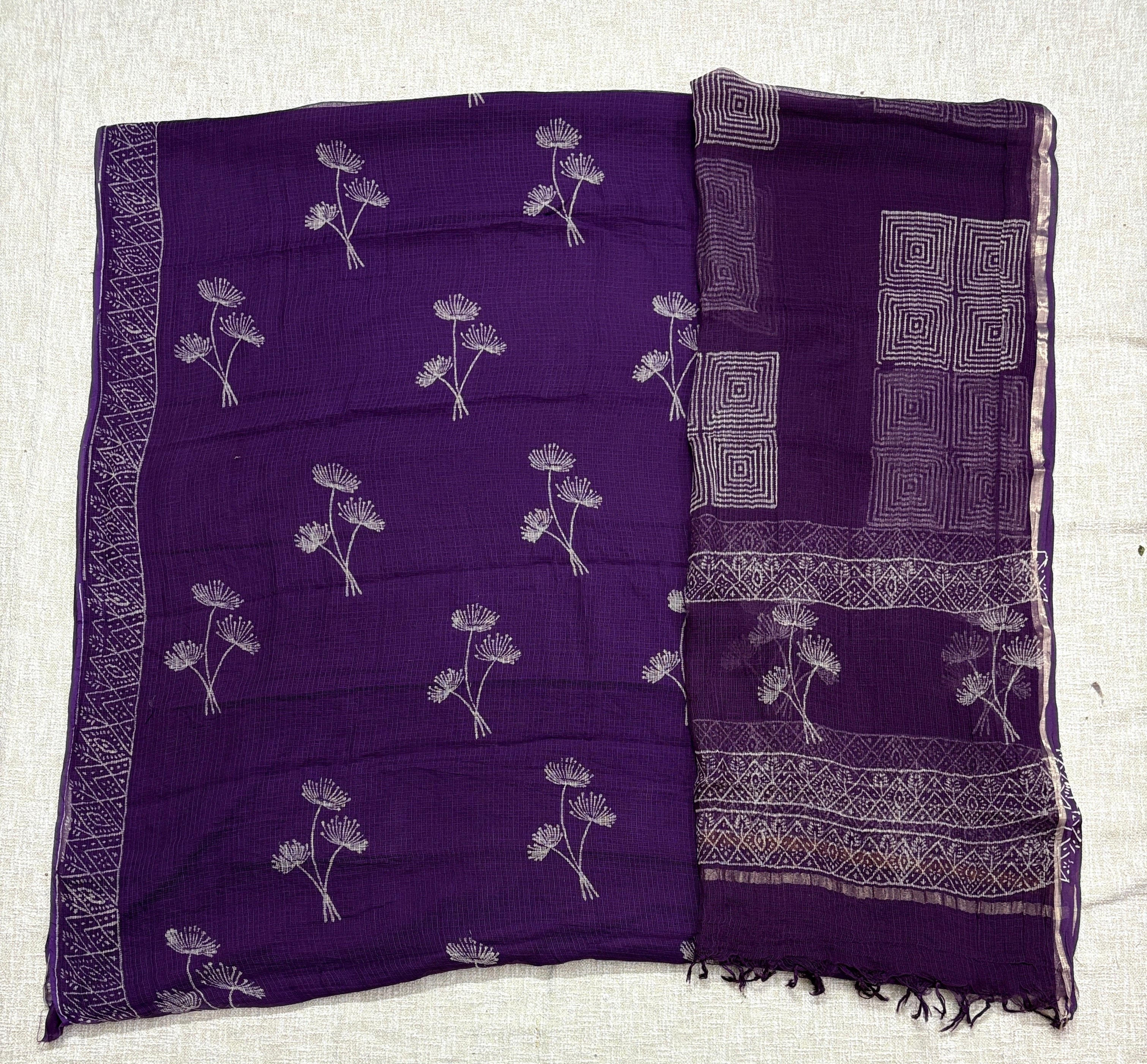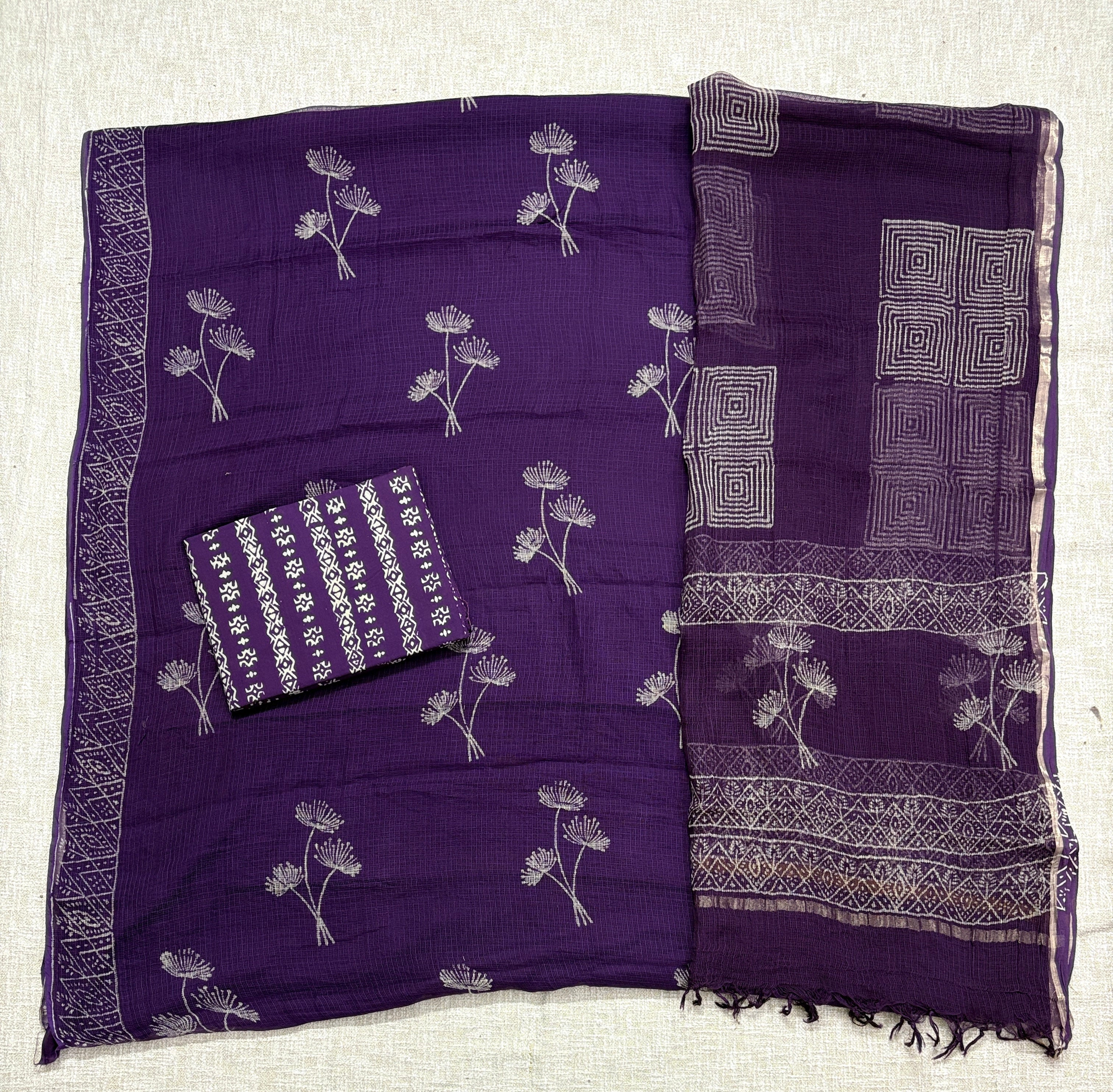 Hand block kota doria suit set for office wear (with extra lining included)